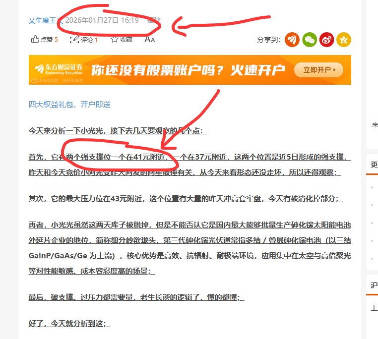 昨天盘后已经给你们分析,小光光的第一个强支撑位在41元附近。