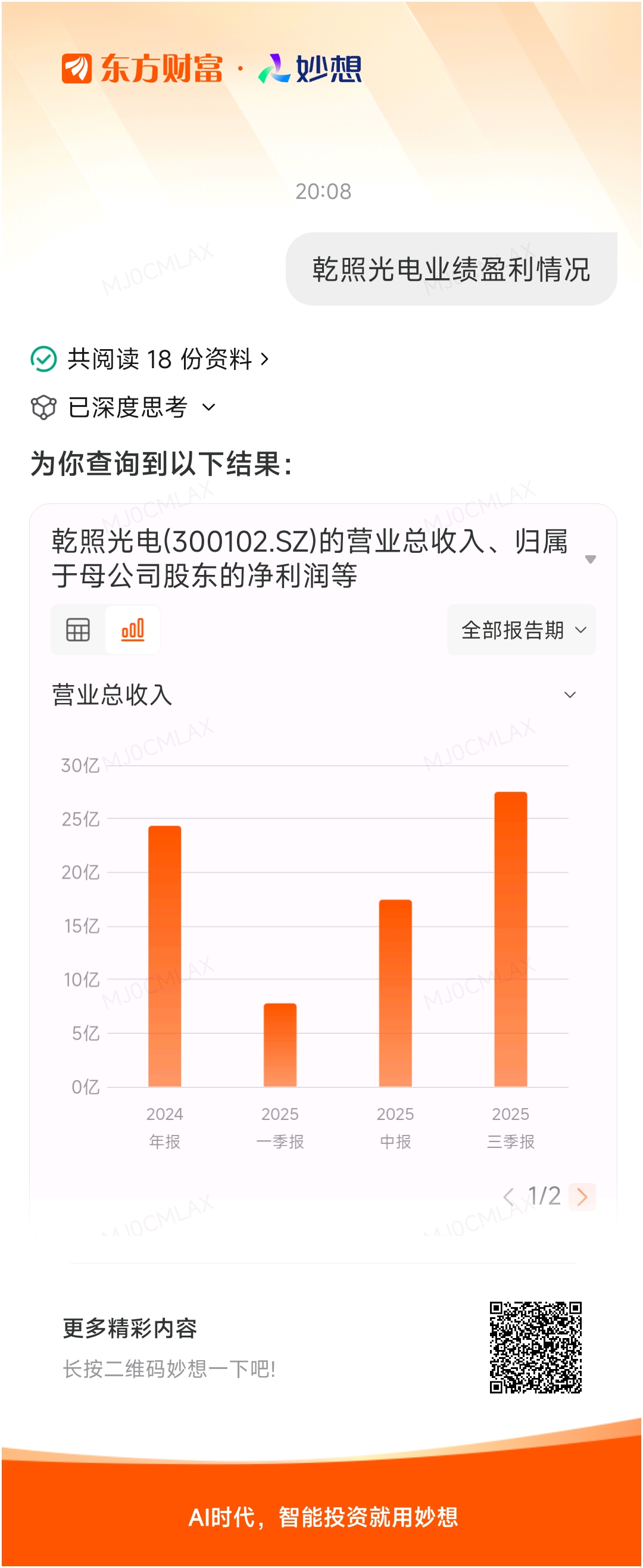 #@妙想,你怎么看?# 妙想一下:乾照光电业绩盈利增长169%客户直供是中国电课科和航天科技方面业务