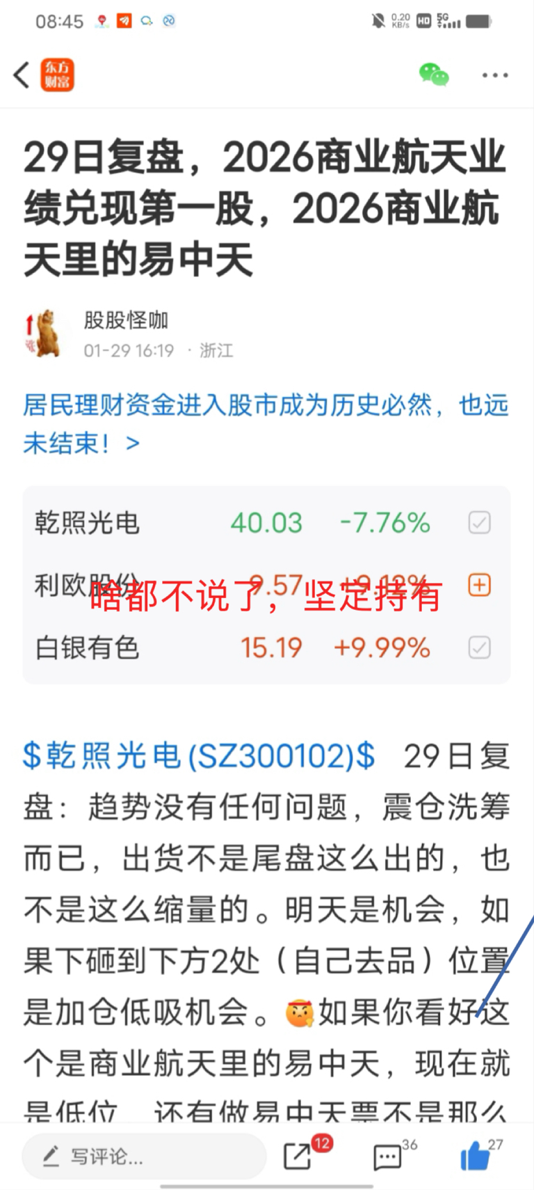 温馨提示: 1.根据《证券法》规定,禁止编造、传播虚假信息或者误导性信息,扰乱证券市场;2.用户在本社区发表的所有资料、言论等仅代表个人观点,与本网站立场无关,不对您构成任何投资建议。用户应基于自己的独立判断,自行决定证券投资并承担相应风险。《东方财富社区管理规定》