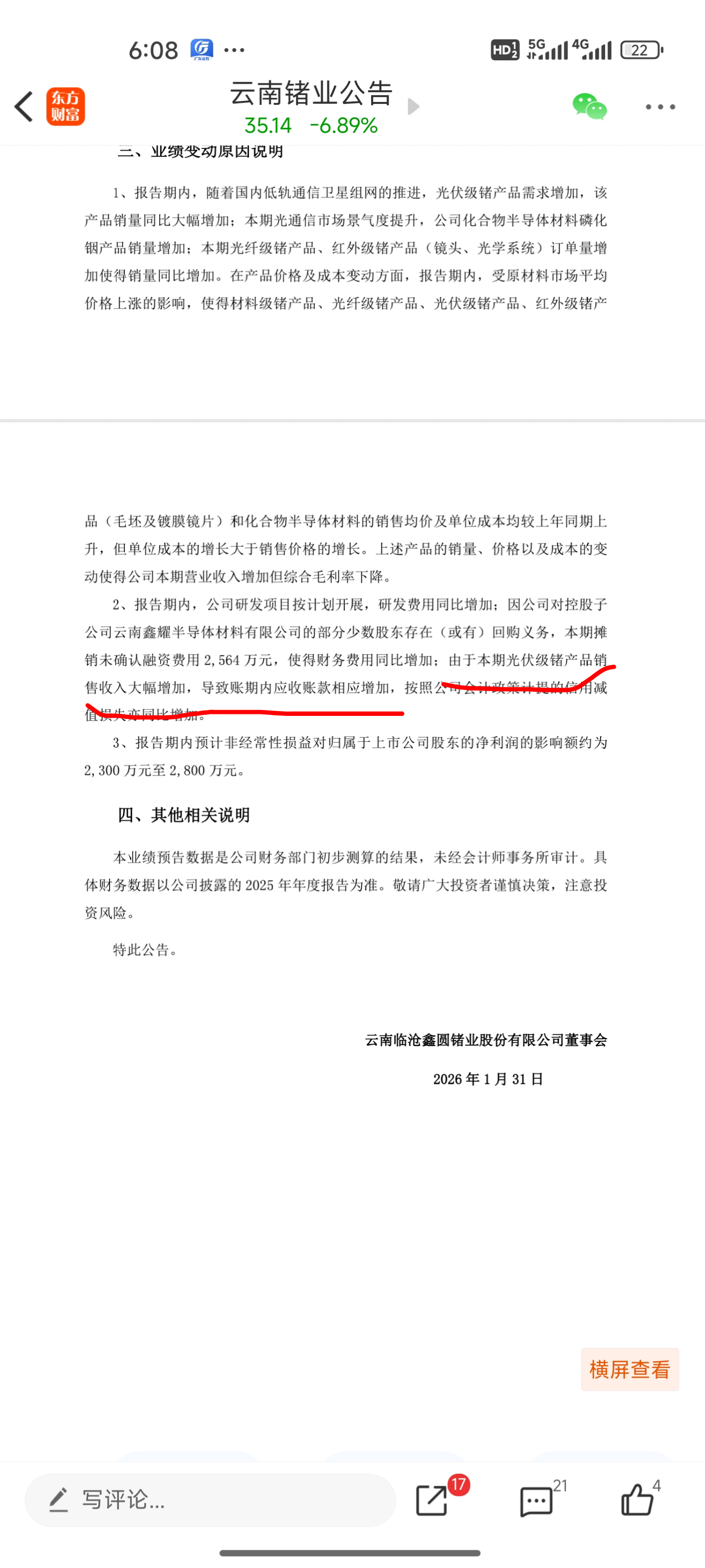 云南锗业的业绩报告就说的很清楚了,由于本期光伏级锗产品销售收入大幅增加。估计大部