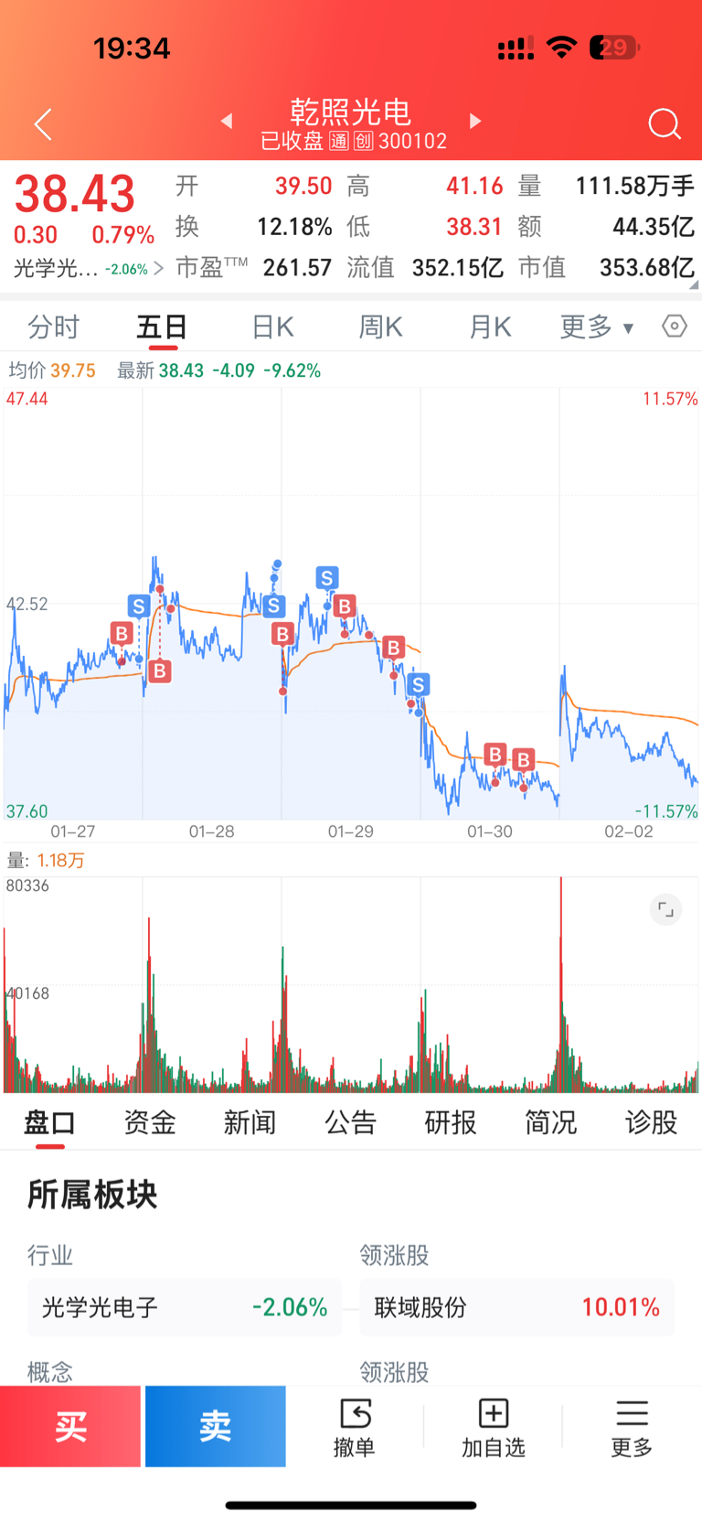 $乾照光电(SZ300102)$ 继续格局,今天错过了做T机会