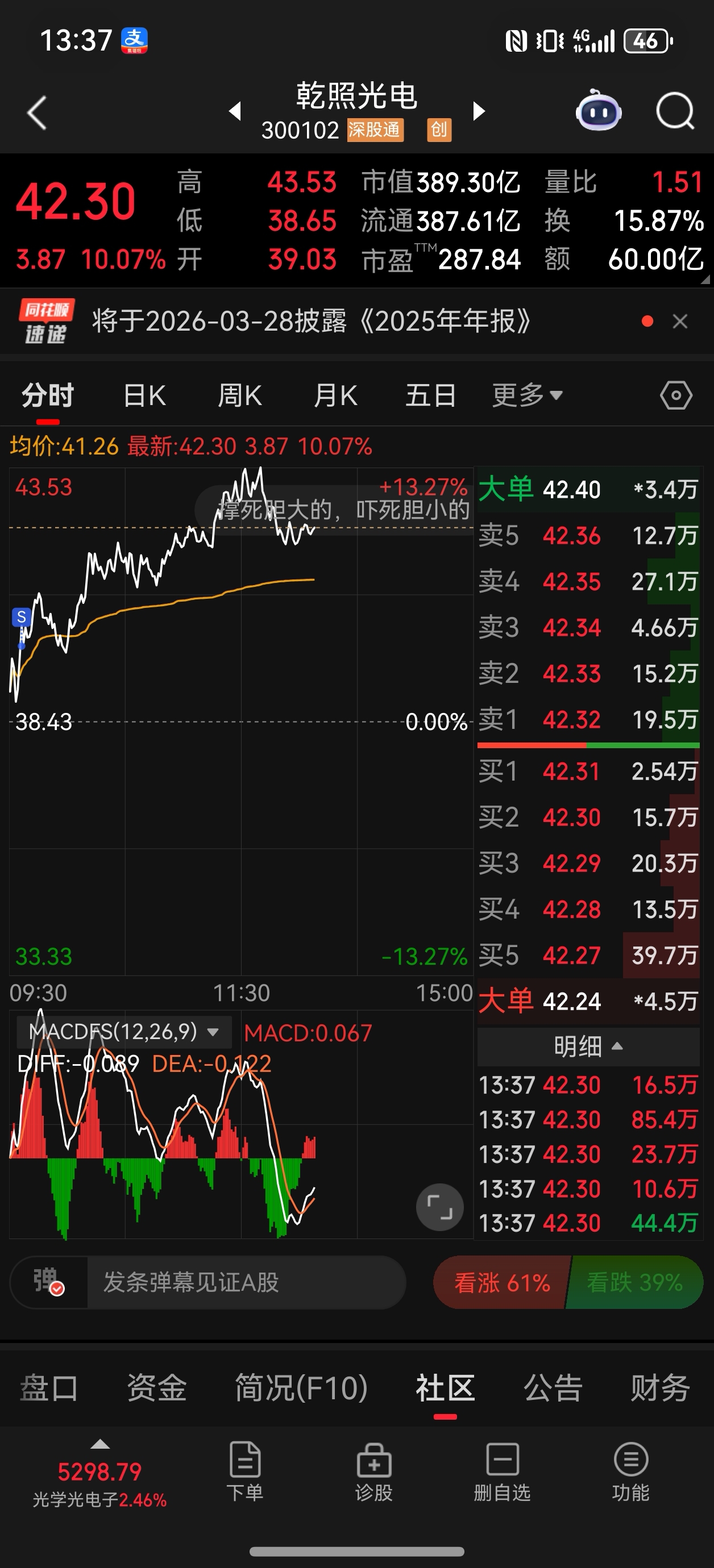 $乾照光电(SZ300102)$ 之前连续三天的高开低走吓破了我的狗胆,我后悔死了。