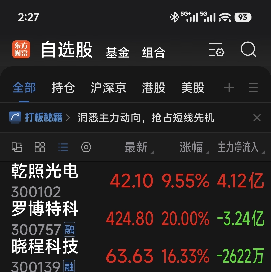 乾照光电买入资金4亿多,股票涨幅惨过人家罗博特科卖出资金3亿多还涨停板