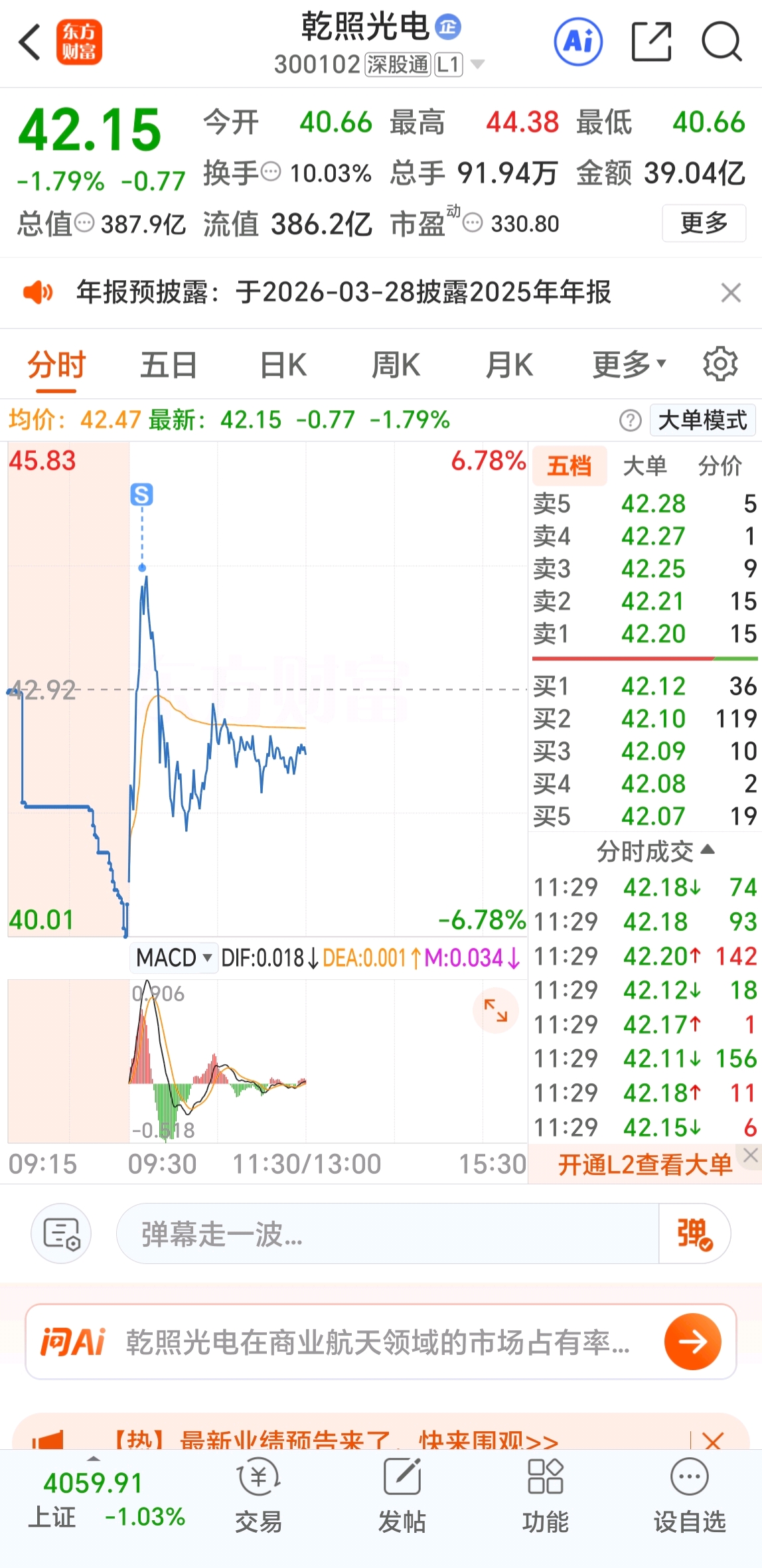 $乾照光电(SZ300102)$ 这个市场对散户越来越不友好了,在量化的Y威下,散户任何操作都在它的算计之中,早盘水下3点割了北京君正,谁知道收盘又拉回只跌1点,买入乾照最高看涨了7个点,谁知收盘却是一场空!今天亏2个点真是无奈!
