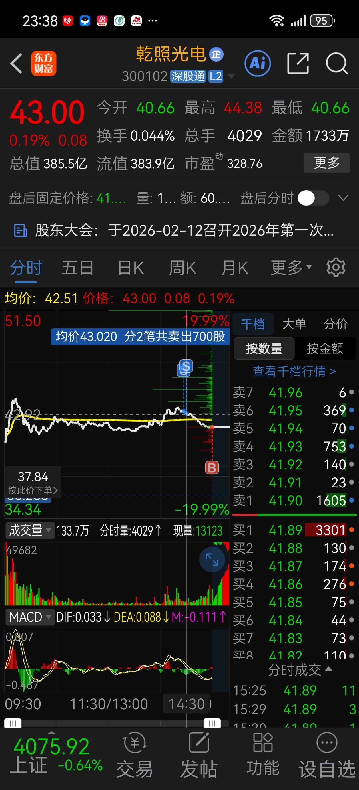 $乾照光电(SZ300102)$ 最近大盘量能萎缩,春节前机构巳无心恋战,大多数都在打酱油,我们小散也只能在热门股上做做高抛低吸,赚点年货钱,估计要到春节后才有大行情。