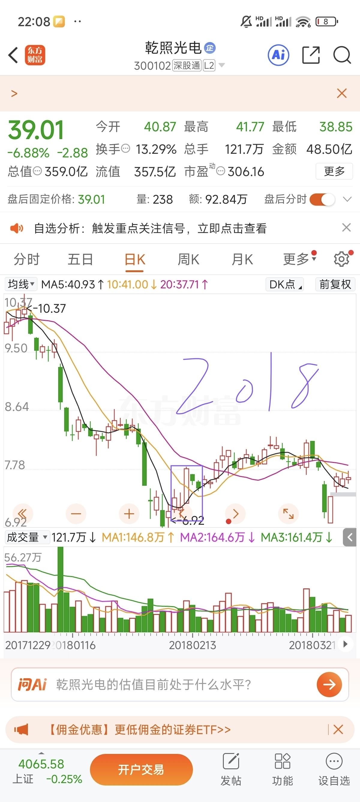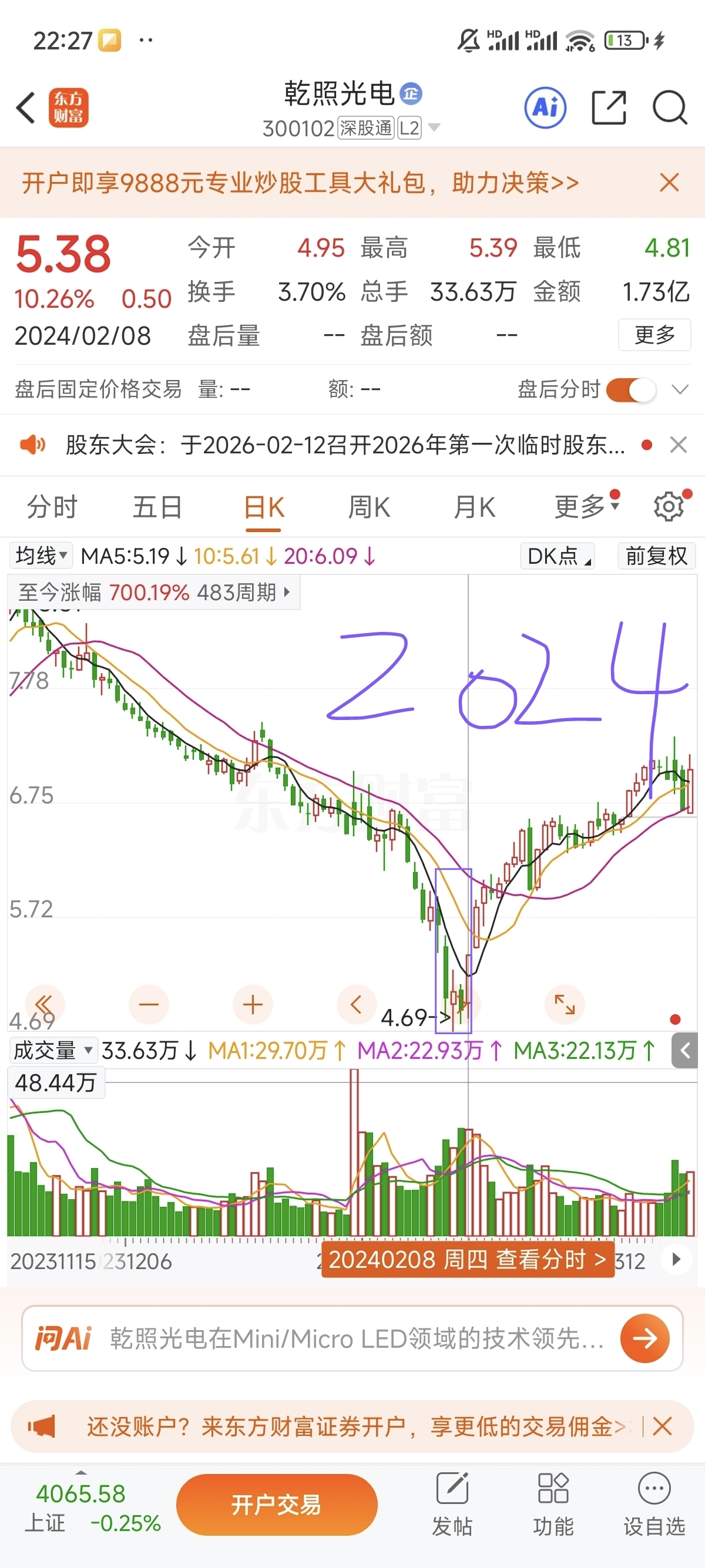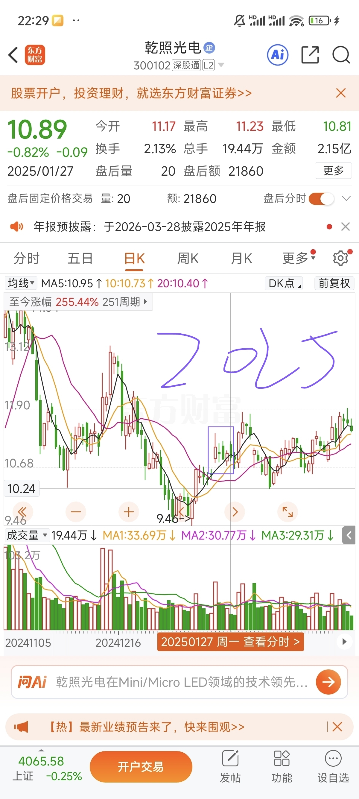$乾照光电(SZ300102)$ 2017-2025春节假期前5个交易日乾照走势(紫框框出)