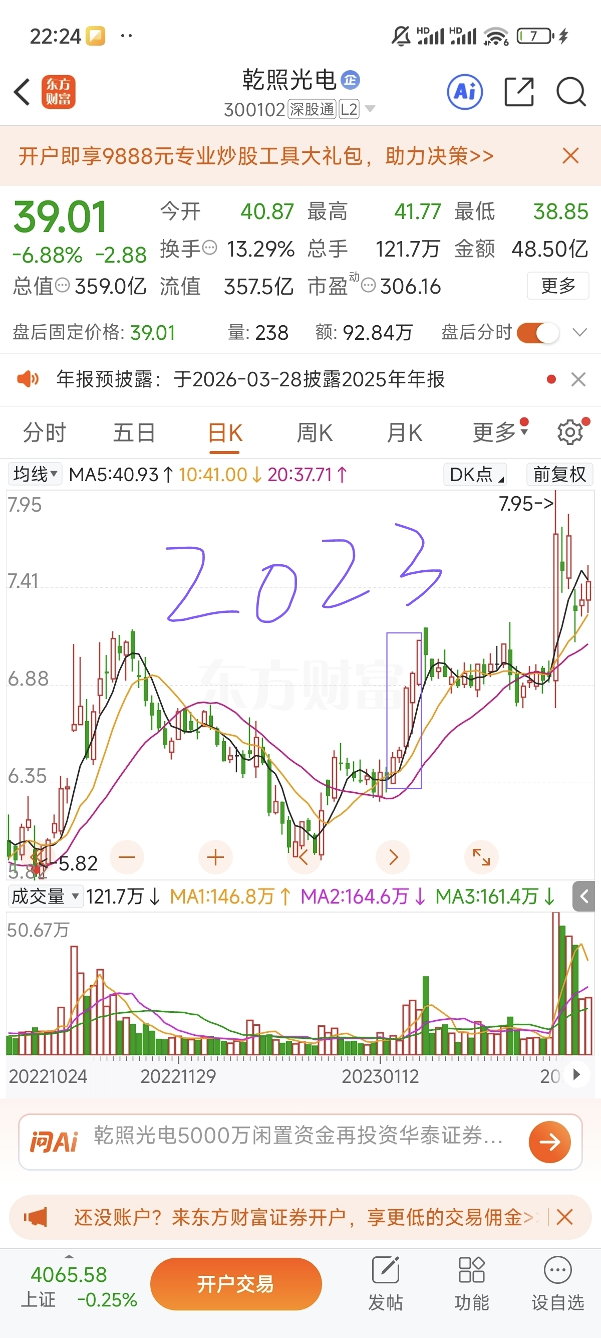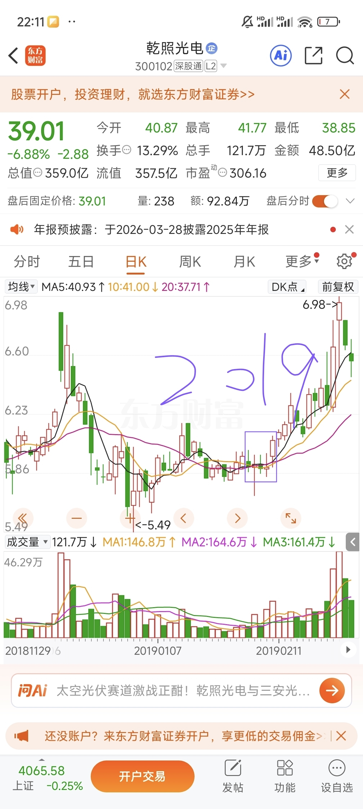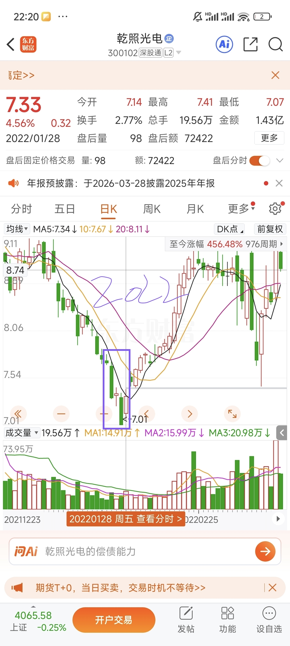 2017-2025春节假期前5个交易日乾照走势(紫框框出)