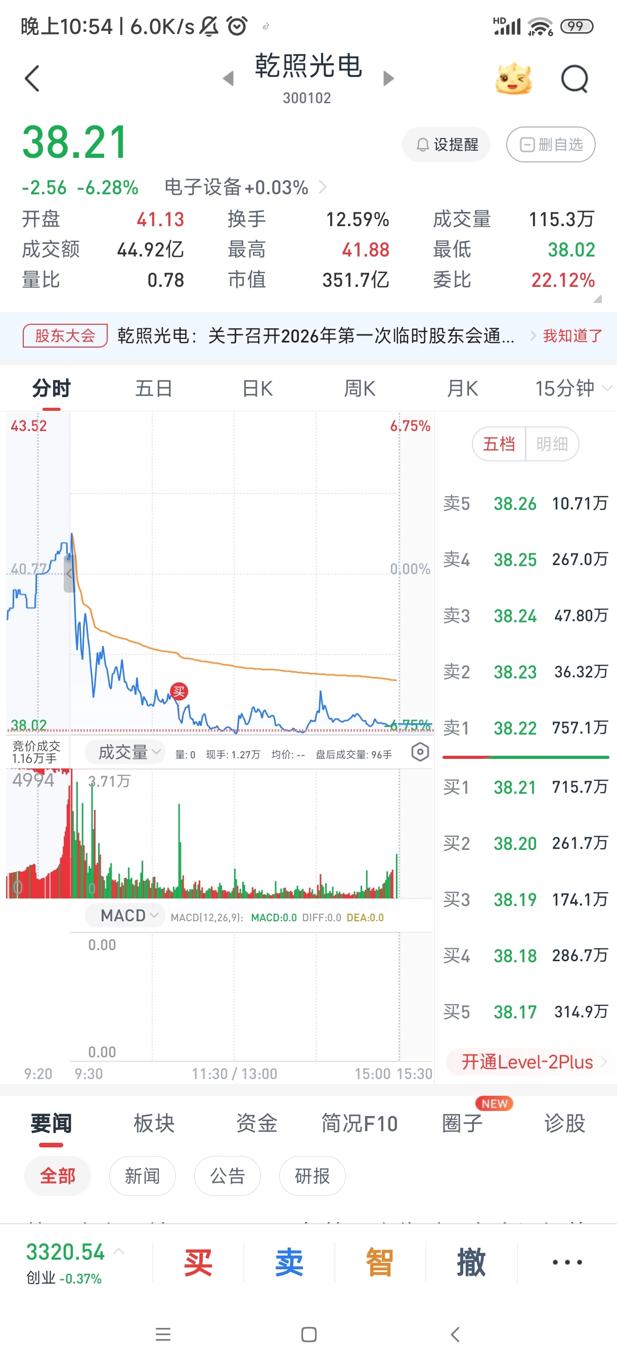 $乾照光电(SZ300102)$ 资金只有在涨势之中才能撤出来,按照周末交易计划周一高开不看等回踩今天摸20日线,明天ai高开分歧,资金概率回流航天进行修复,竞价低开低点摸37块5让今天抄底的割肉,10点左右拉起来,拉起来就是撤退的时候,37块5无抵抗直接割肉