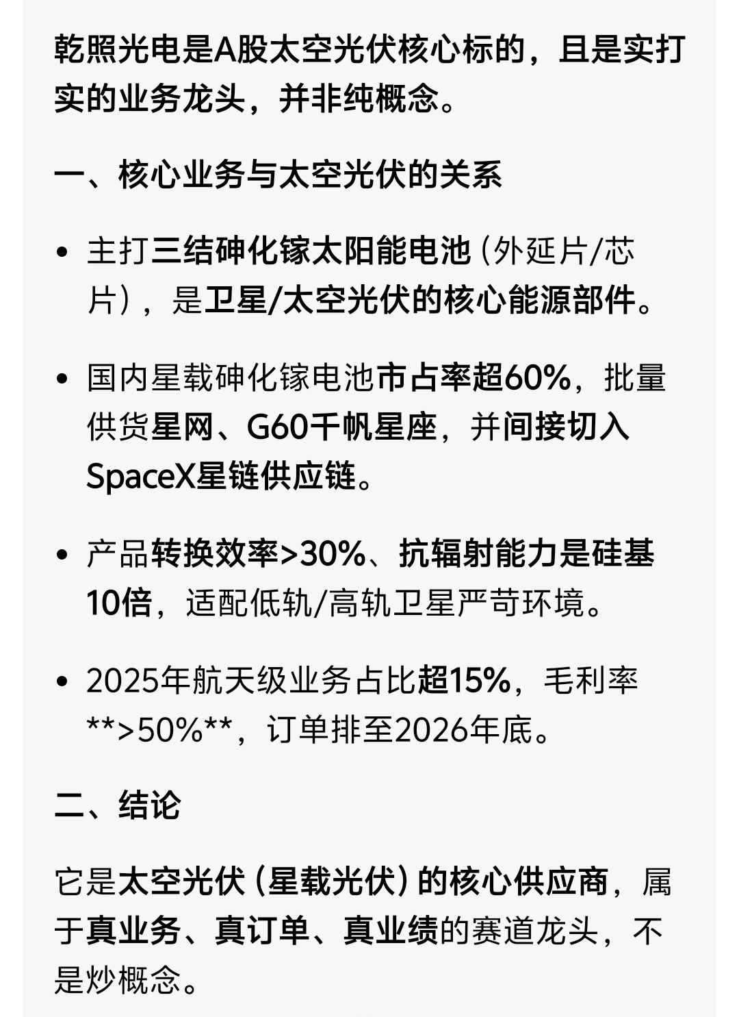 商业航天龙头,太空光伏龙头,乾照光电股价肯定要上100元,毋庸置疑,不接受反驳!