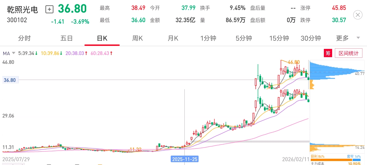$乾照光电(SZ300102)$ 主力成本