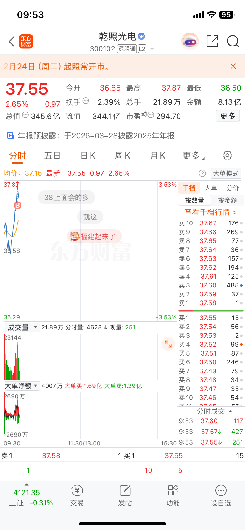 温馨提示: 1.根据《证券法》规定,禁止编造、传播虚假信息或者误导性信息,扰乱证券市场;2.用户在本社区发表的所有资料、言论等仅代表个人观点,与本网站立场无关,不对您构成任何投资建议。用户应基于自己的独立判断,自行决定证券投资并承担相应风险。《东方财富社区管理规定》