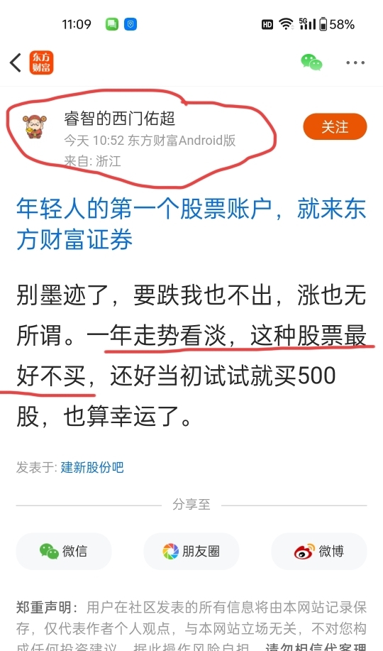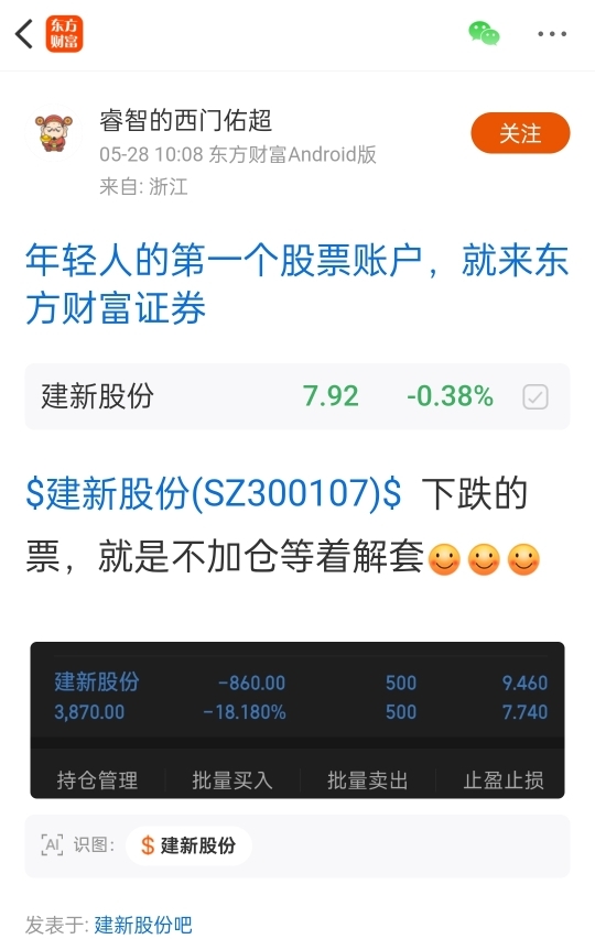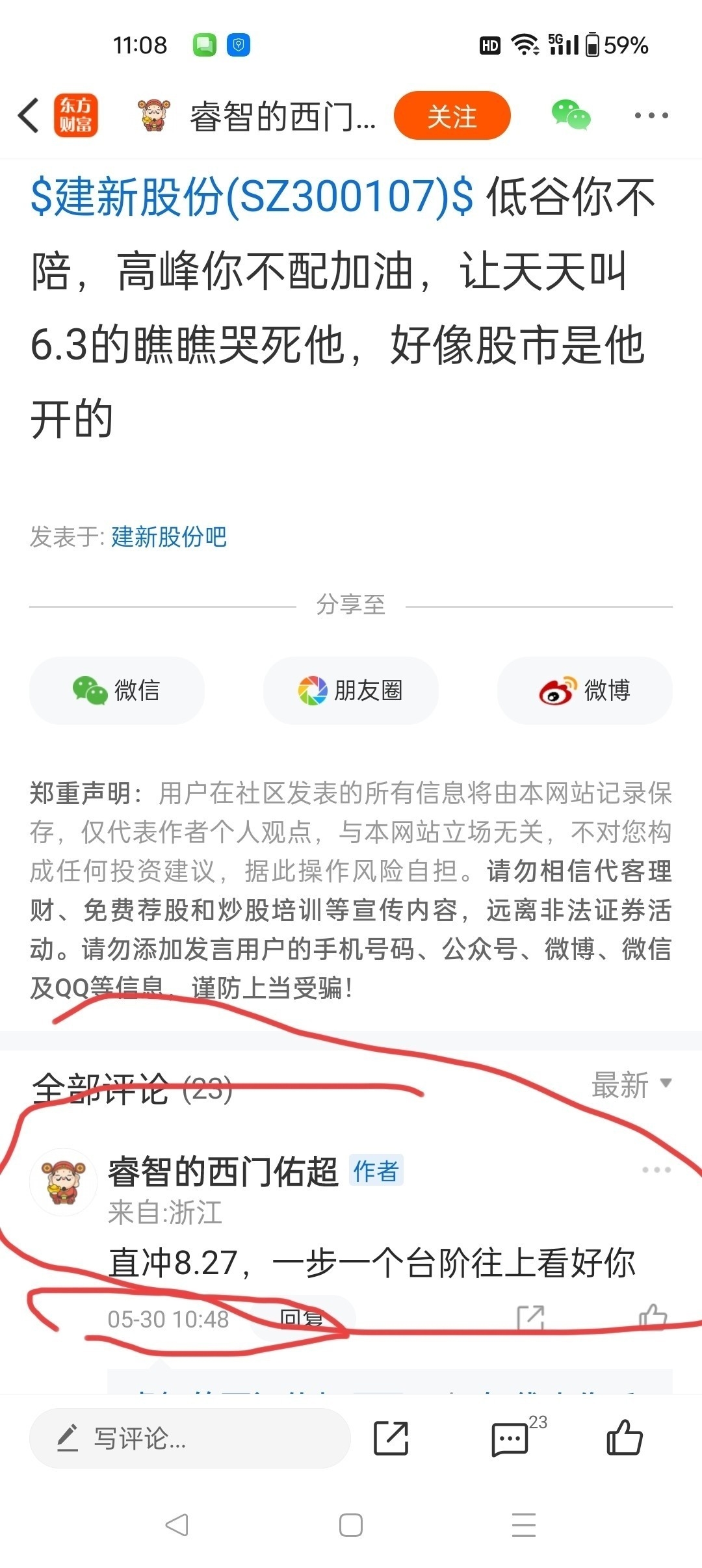 来看一个建新股吧里的股神,人家狂是有原因的,注意看发帖时间哦。涨了就看好,跌了就