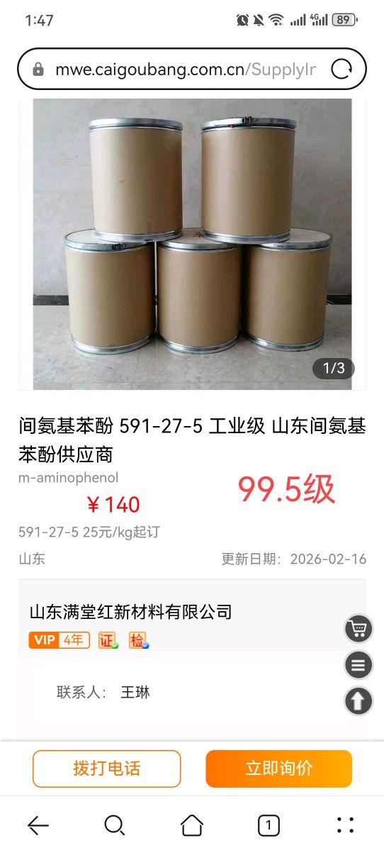 间氨基苯酚贸易商报价跳涨了同一贸易商注意纯度99级和99.5级一般价差在5000