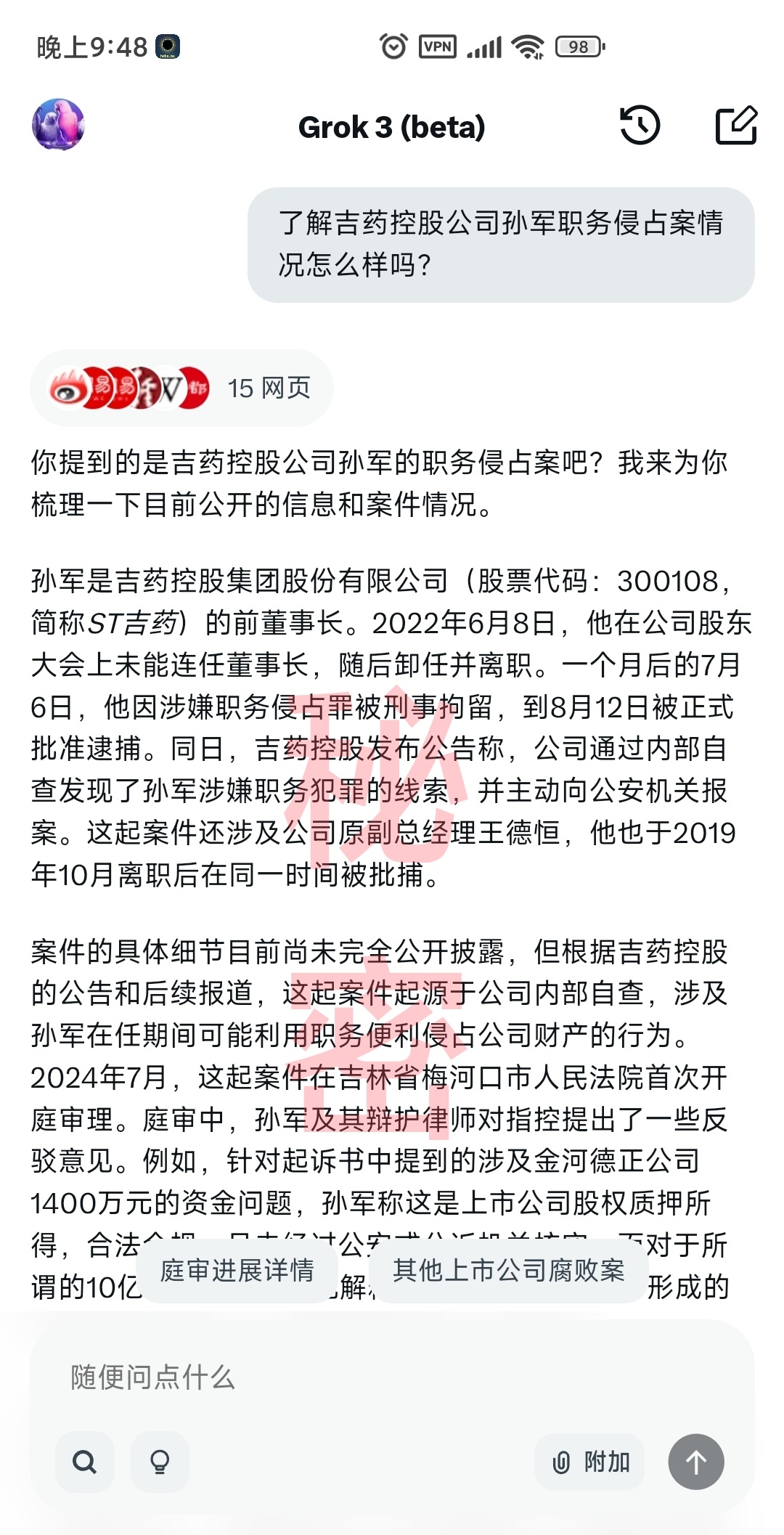 请Grok整理一下孙军职务侵占案的情况。