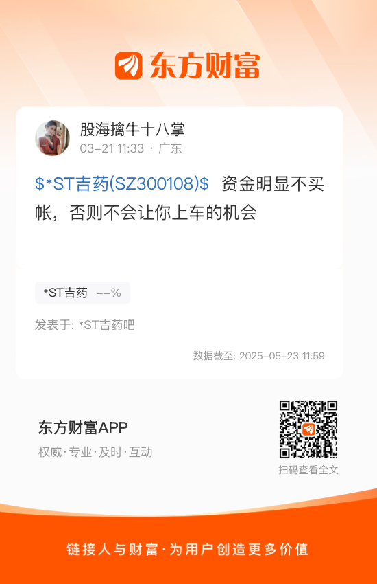 $*ST吉药(SZ300108)$  资金明显不买帐,否则不会让你上车的机会