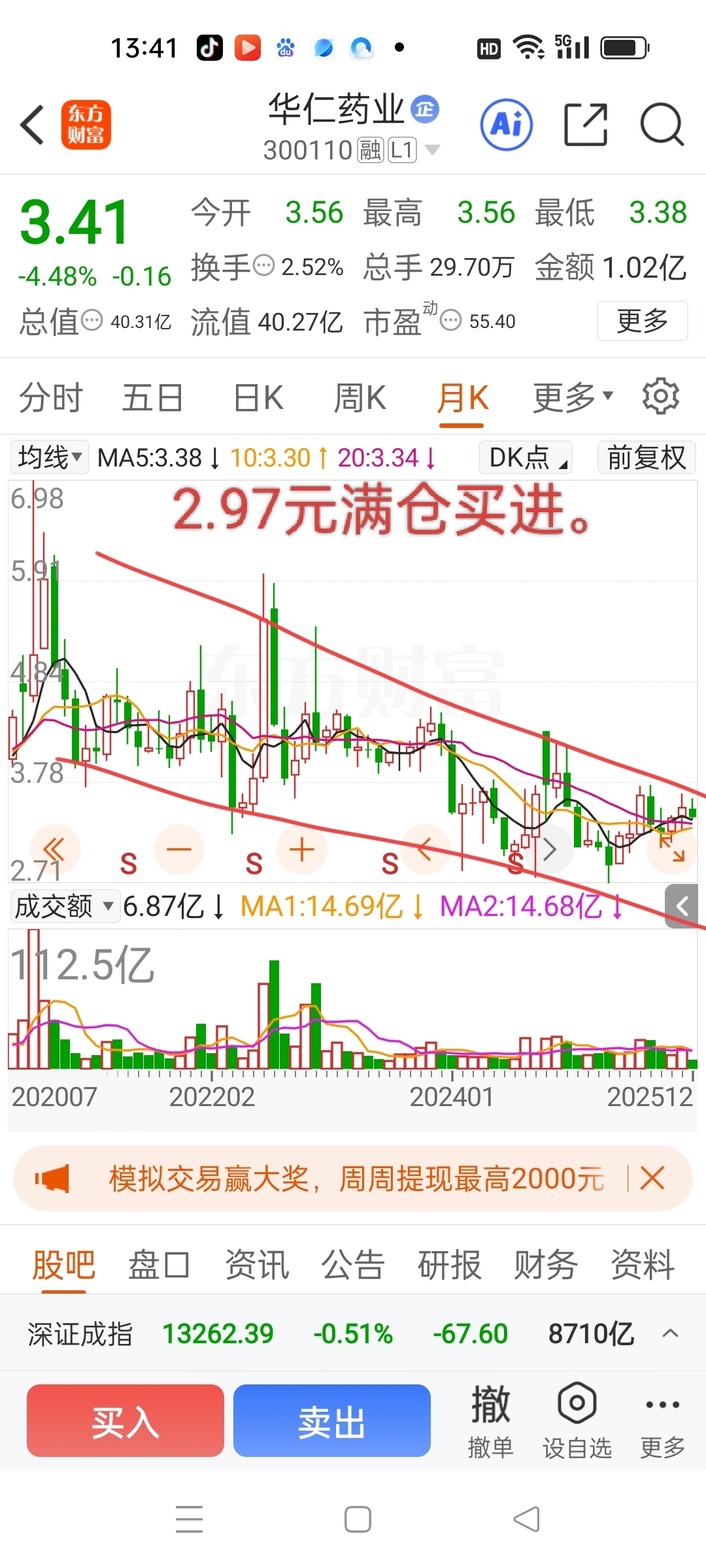$华仁药业(SZ300110)$ 跌到这个价位一定要满仓买进