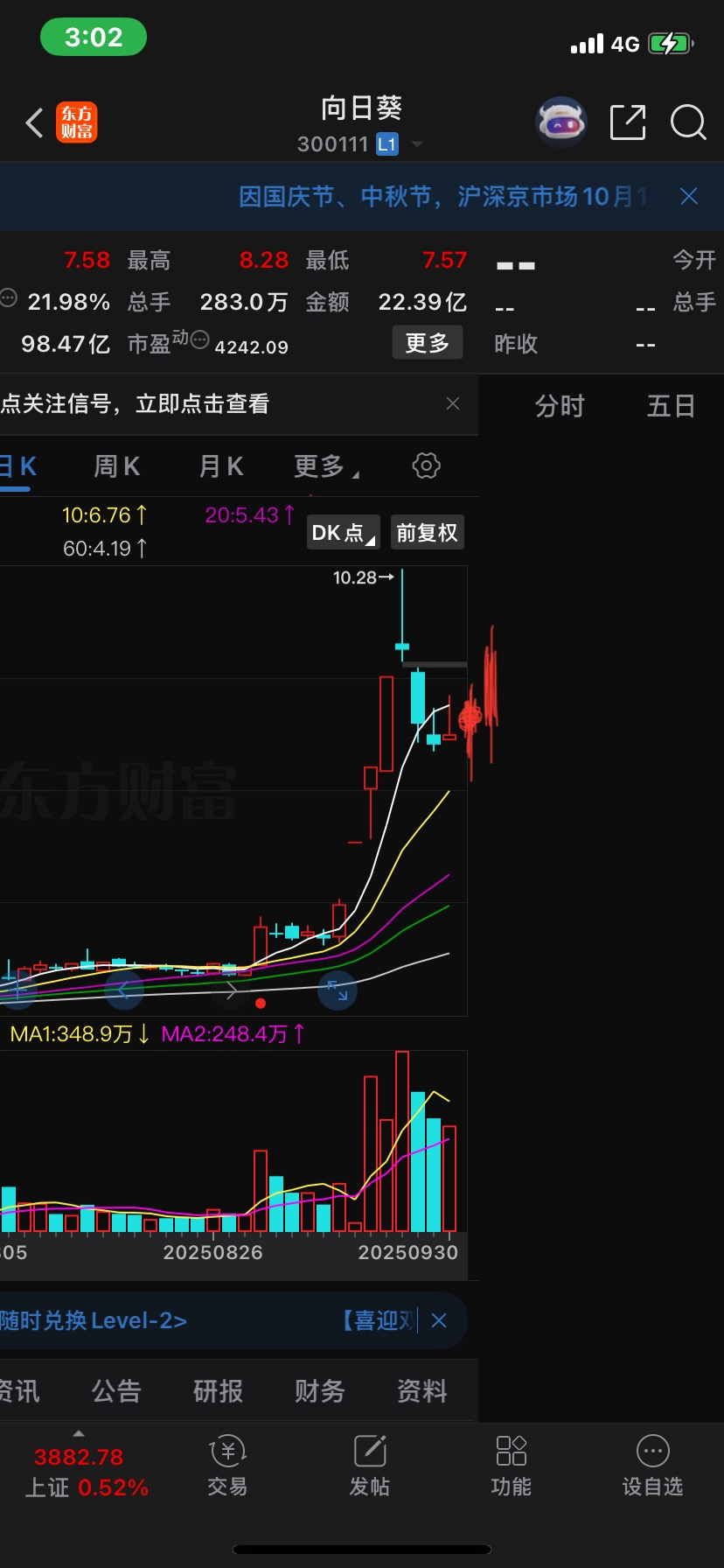 $向日葵(SZ300111)$ 没有一模一样的图,只能随机应变,但是总方向没变!节庆后向日葵爆发万向钱潮领队,向日葵殿后!