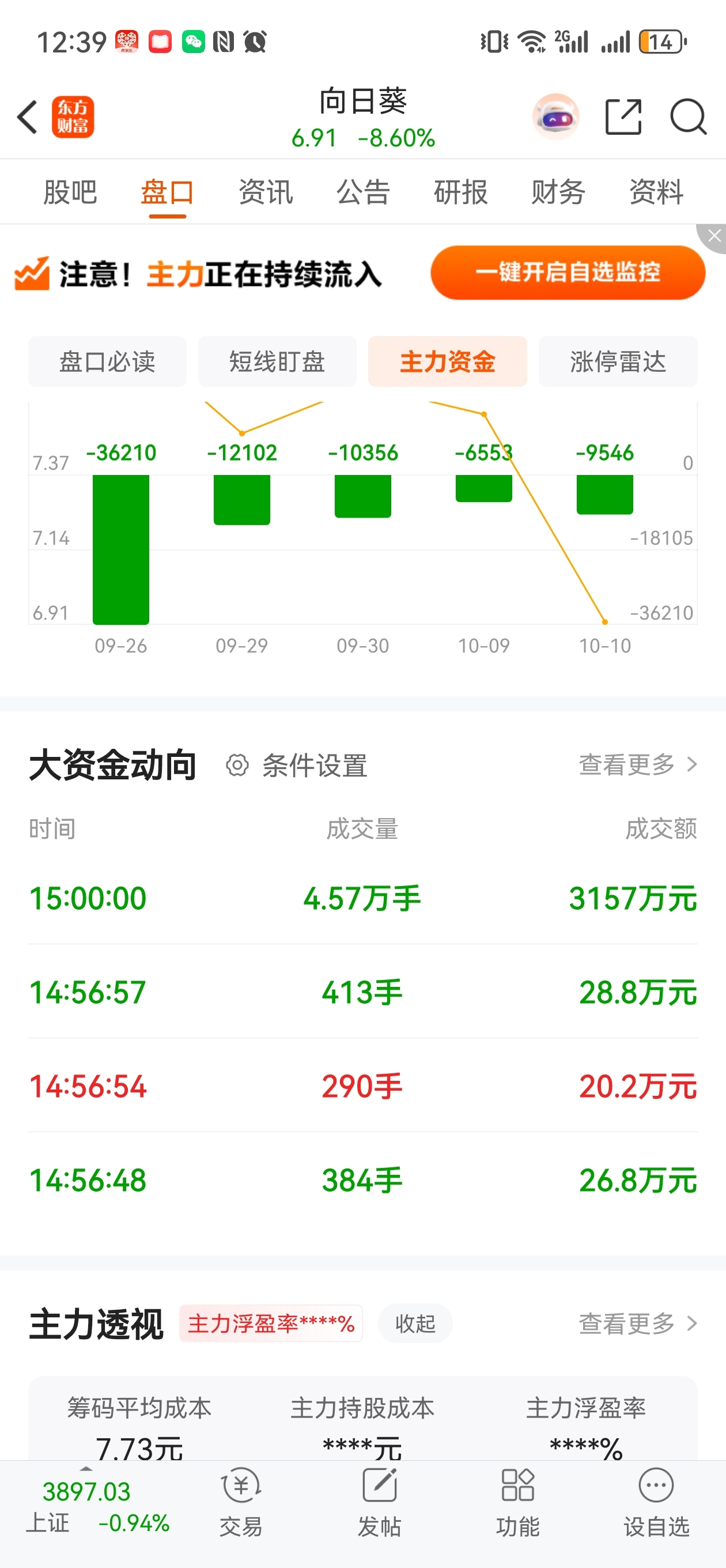 $向日葵(SZ300111)$ 尾盘出了大单这个怎么回事