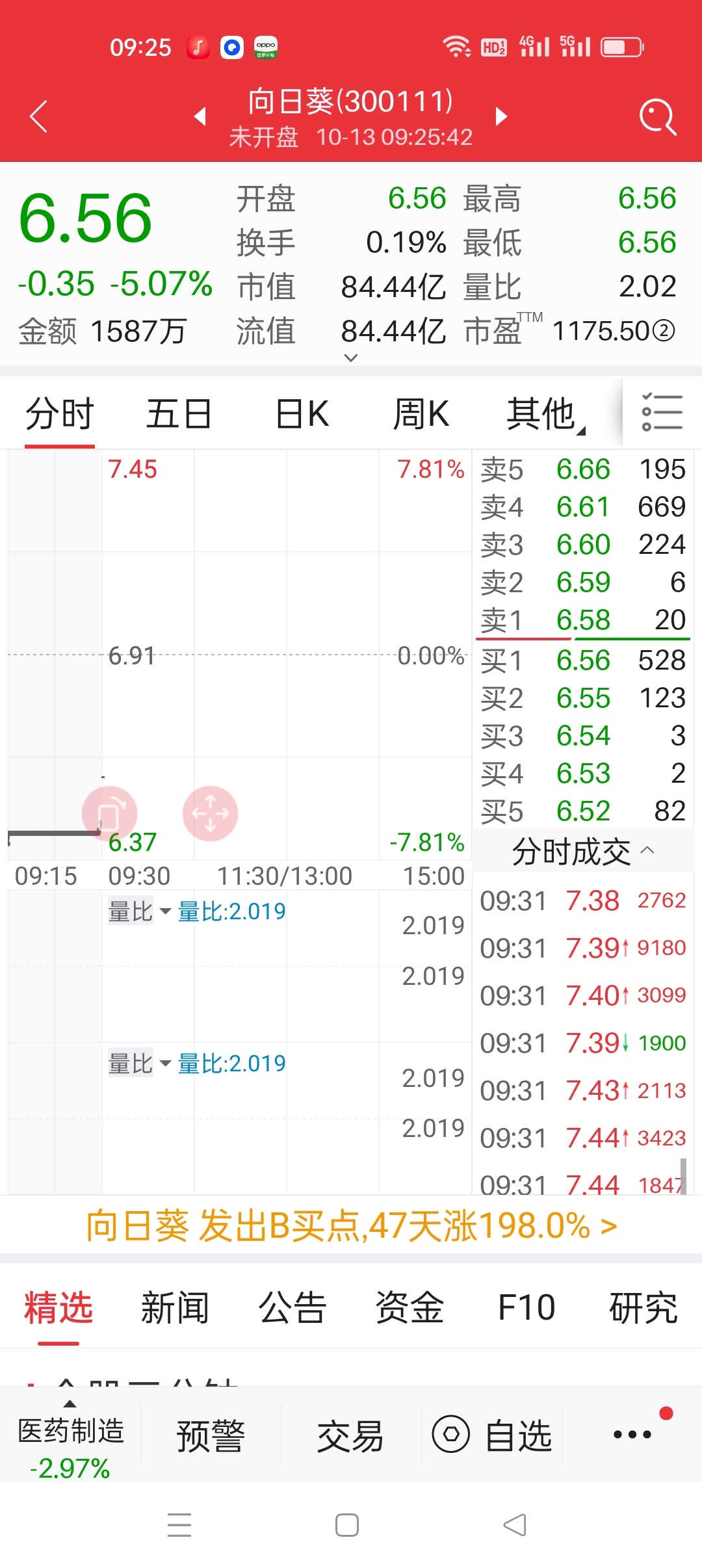 $向日葵(SZ300111)$ 我就想知道,9:25为啥能出现9:34的交易