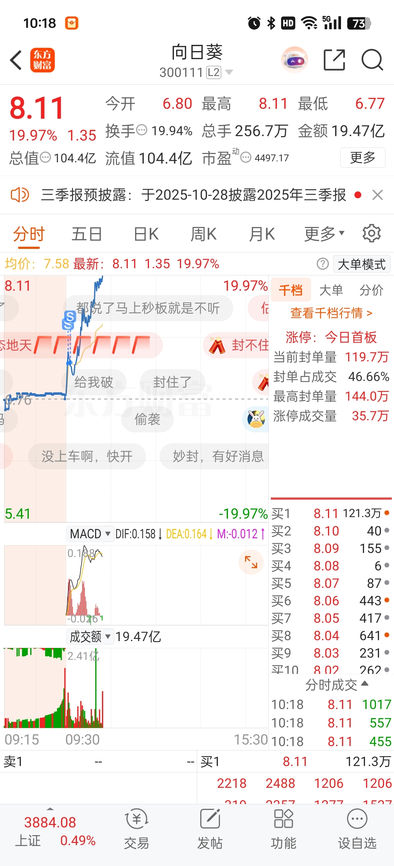 我晕了,早上大盘不是庞臭,我一卖起飞了。