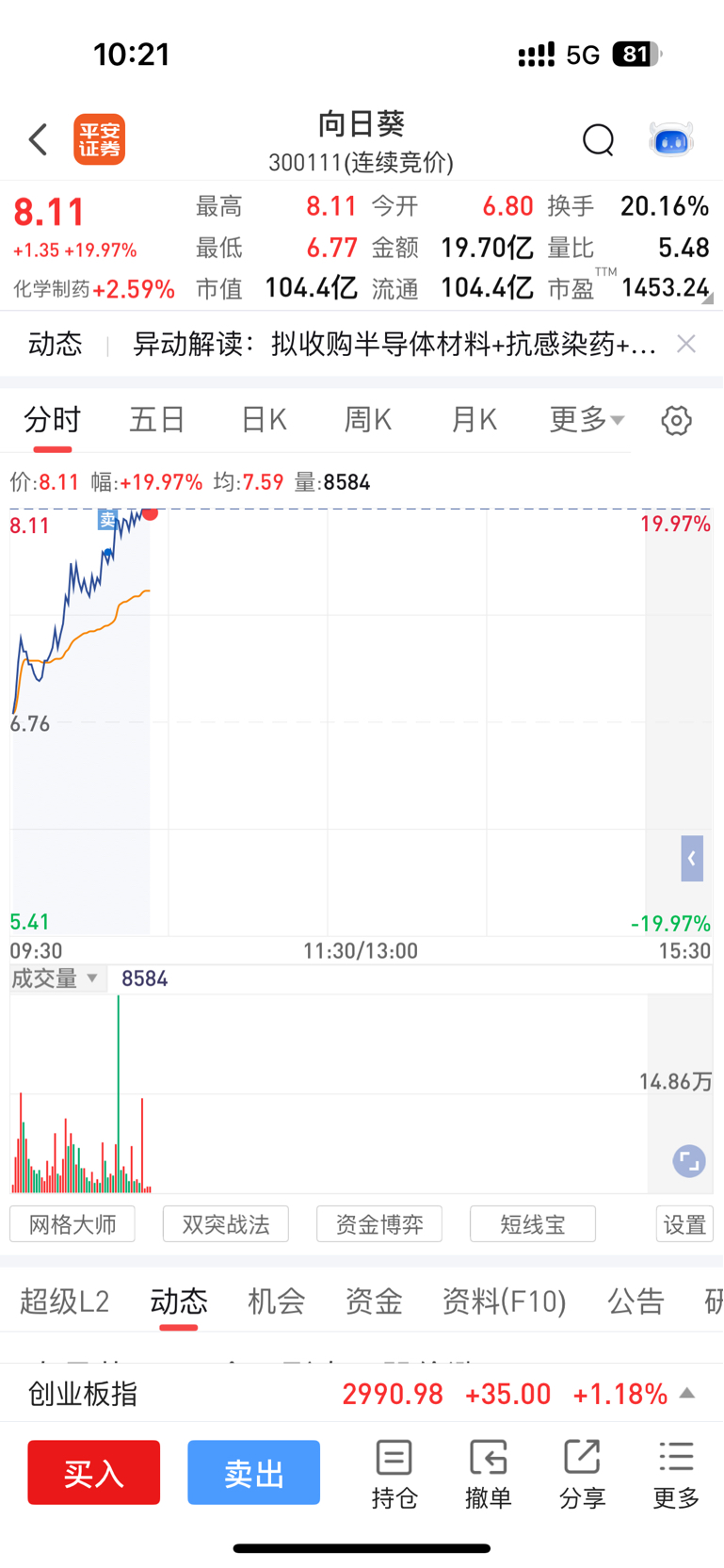 $向日葵(SZ300111)$ 没想到这么快,减仓为敬,剩下仓位看看主力愿不愿意冲前高