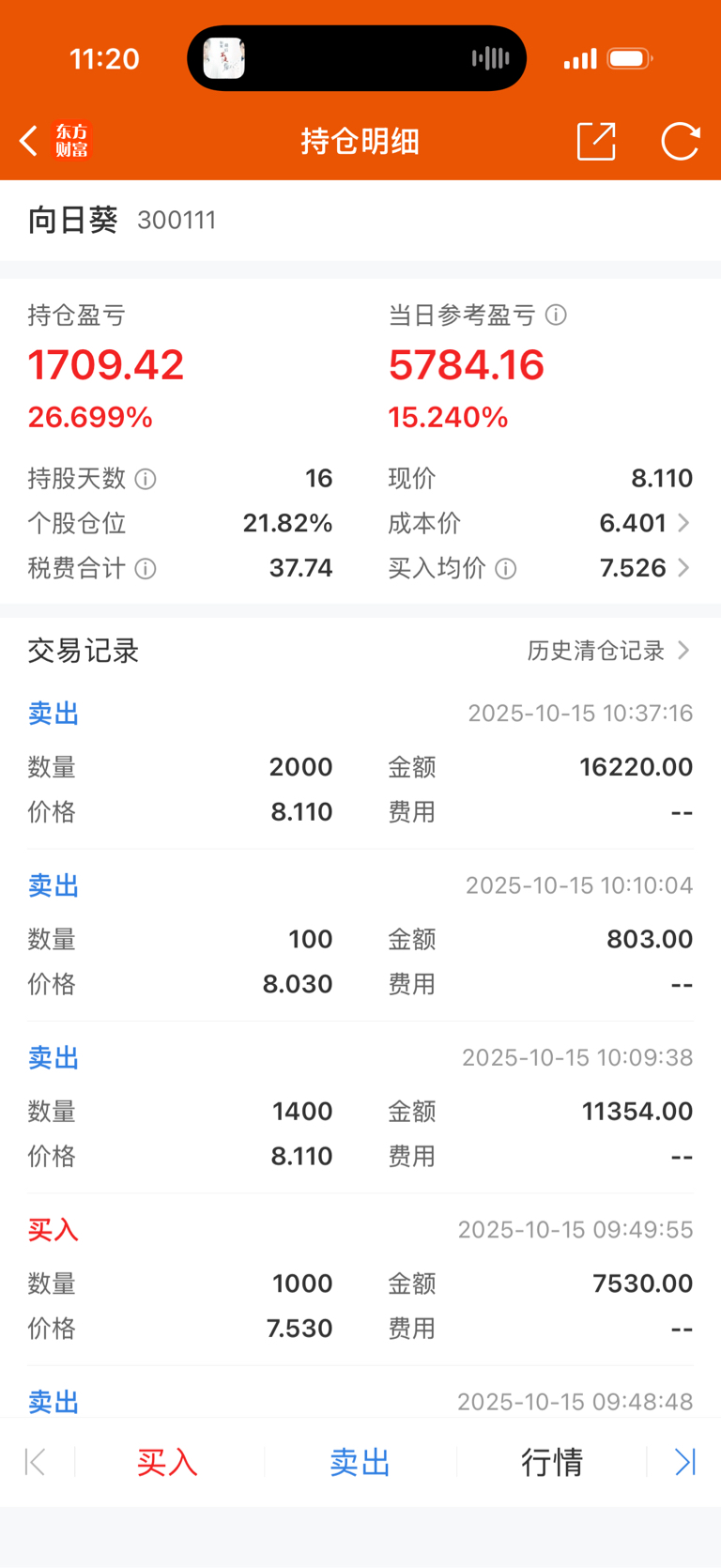 $向日葵(SZ300111)$ 套了半个月顶不住走了