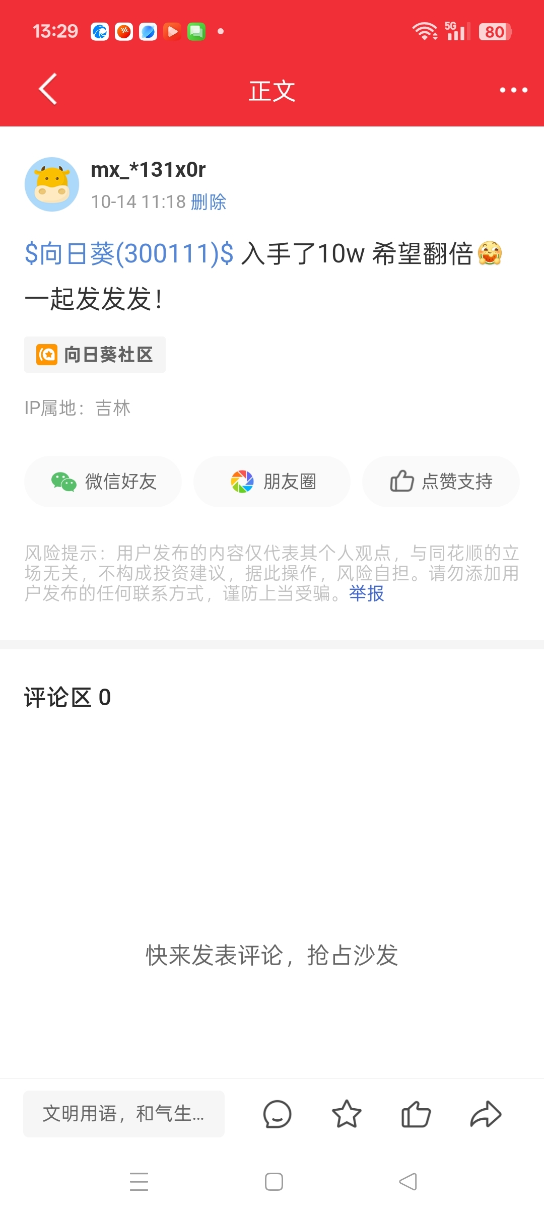 温馨提示: 1.根据《证券法》规定,禁止编造、传播虚假信息或者误导性信息,扰乱证券市场;2.用户在本社区发表的所有资料、言论等仅代表个人观点,与本网站立场无关,不对您构成任何投资建议。用户应基于自己的独立判断,自行决定证券投资并承担相应风险。《东方财富社区管理规定》