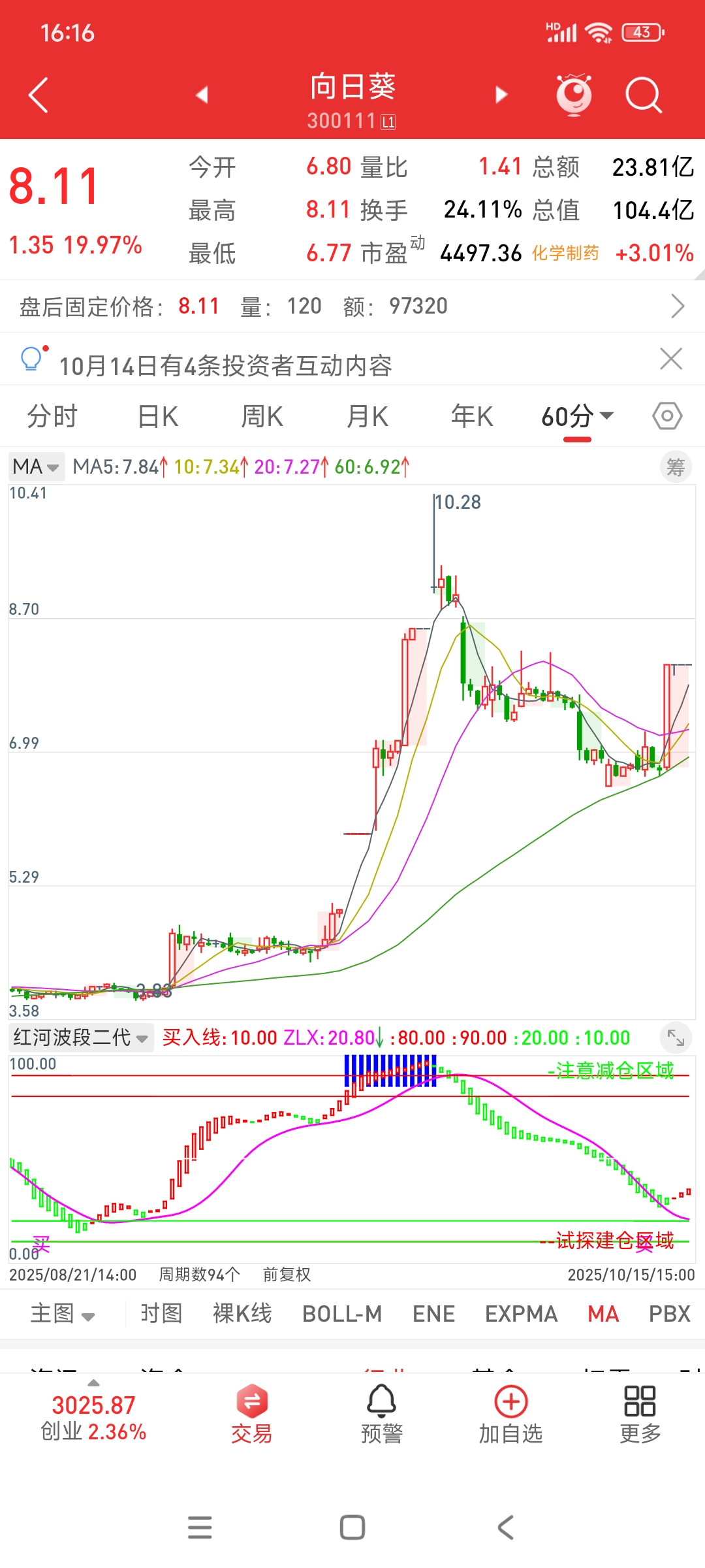 $向日葵(SZ300111)$ 底部出现买字以后绿柱转红柱做确认,今天涨停也正常,这里短线继续看涨,红柱转绿柱就撤,具体可以看长城军工的帖子,底部绿转红和你们说了可以涨,今天60分钟也是红转绿马上撤,差价就吃到了。