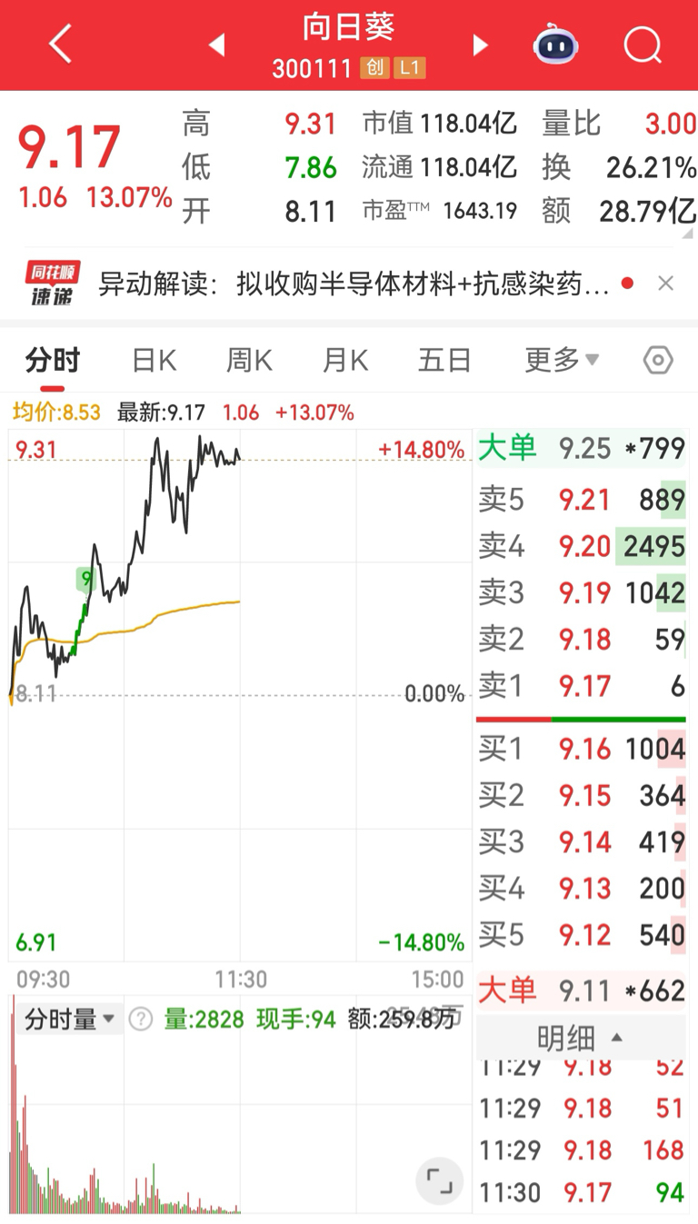 300111向日葵猛涨13个点!这波吃肉的朋友在哪?