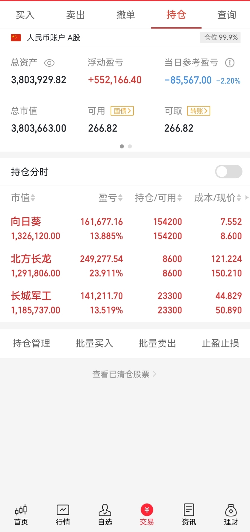 周哥早盘记录今天仓位还是北方长龙,长城军工,向日葵继续持有起来了下午期待继续红加