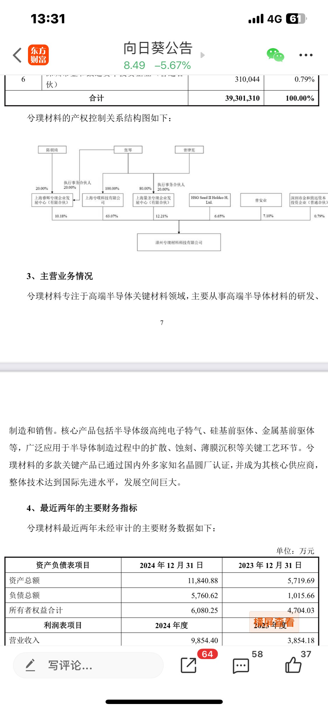 $向日葵(SZ300111)$ 漳州兮璞材料科技有限公司产品已通过台积电、三星电子、中芯国际等全球主流晶圆厂的严格认证,并进入核心供应链体系。