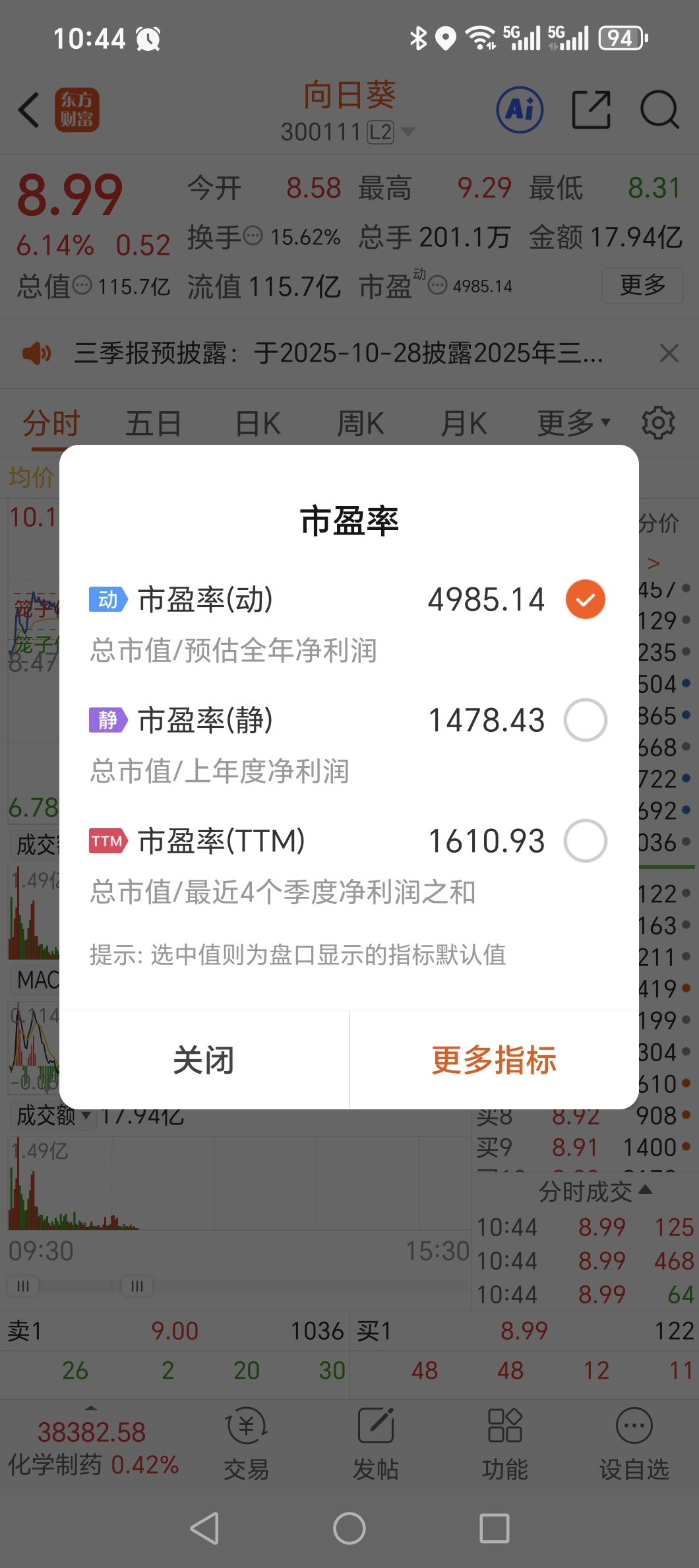 $向日葵(SZ300111)$ 市盈率为什么这么高,有懂的吗?