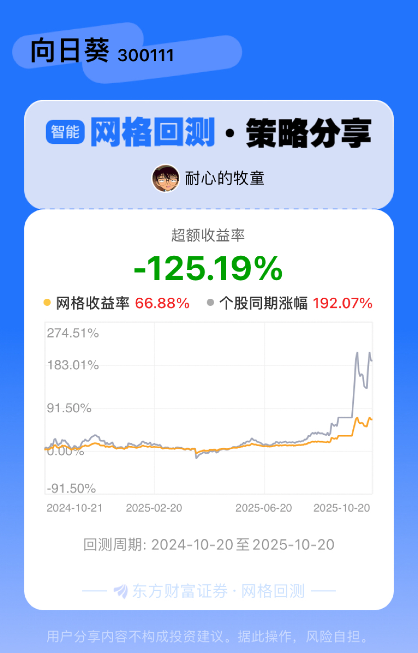 #条件单交流# #网格交易晒单# 我使用网格交易回测了最关心的个股,朋友们走过路过看看我的收益~$向日葵(SZ300111)$