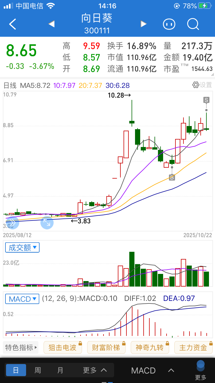 $向日葵(SZ300111)$ 被洗出来了,应该还会创新高,没那耐性