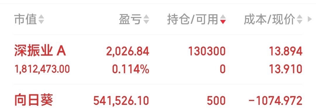 10.23周四暂出向日葵,再加深振业A向日葵有所破位,暂出。,再加仓深振业A