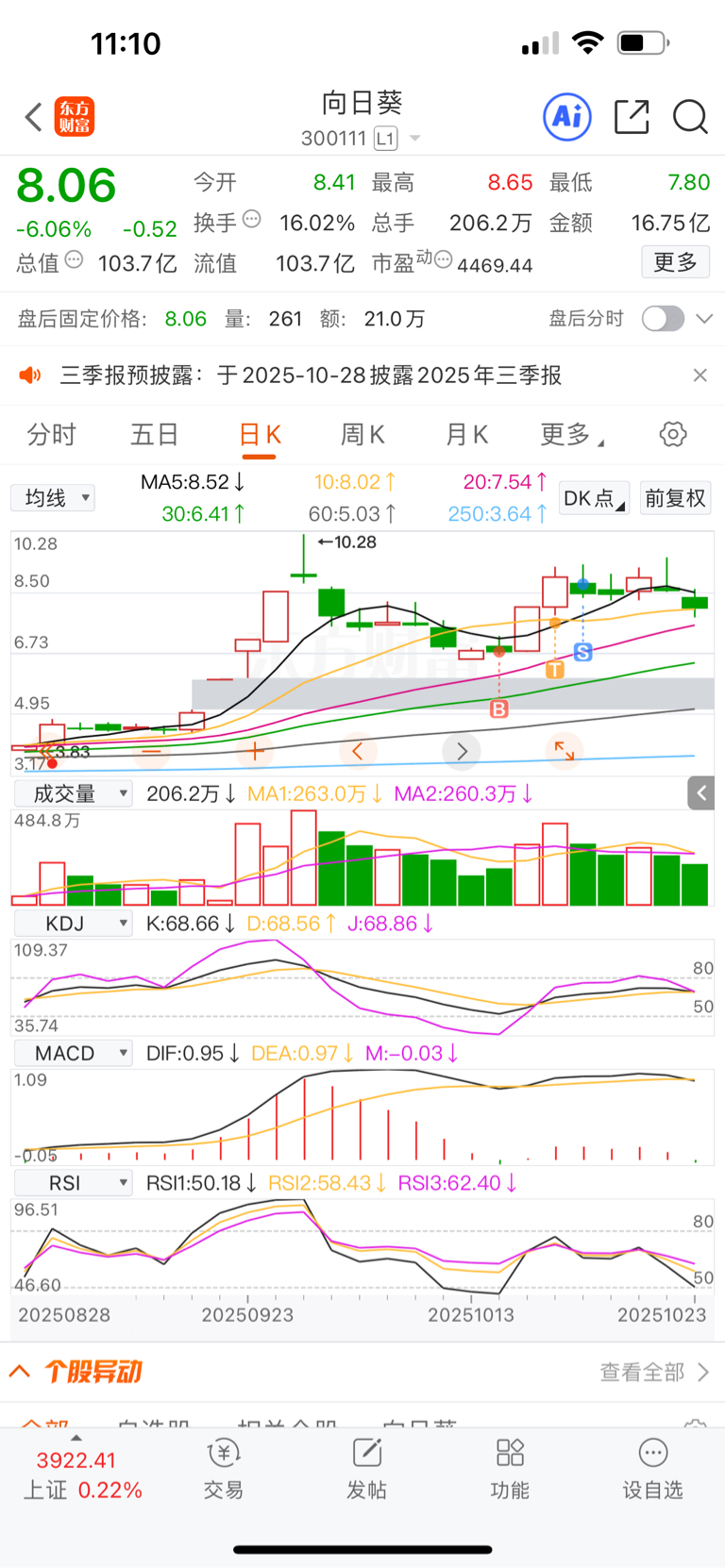 $向日葵(SZ300111)$ 三天搞了30个点离场、我还会回来,这个票的量能和换手,绝对还有行情、主力等我,我现在在另外一个。