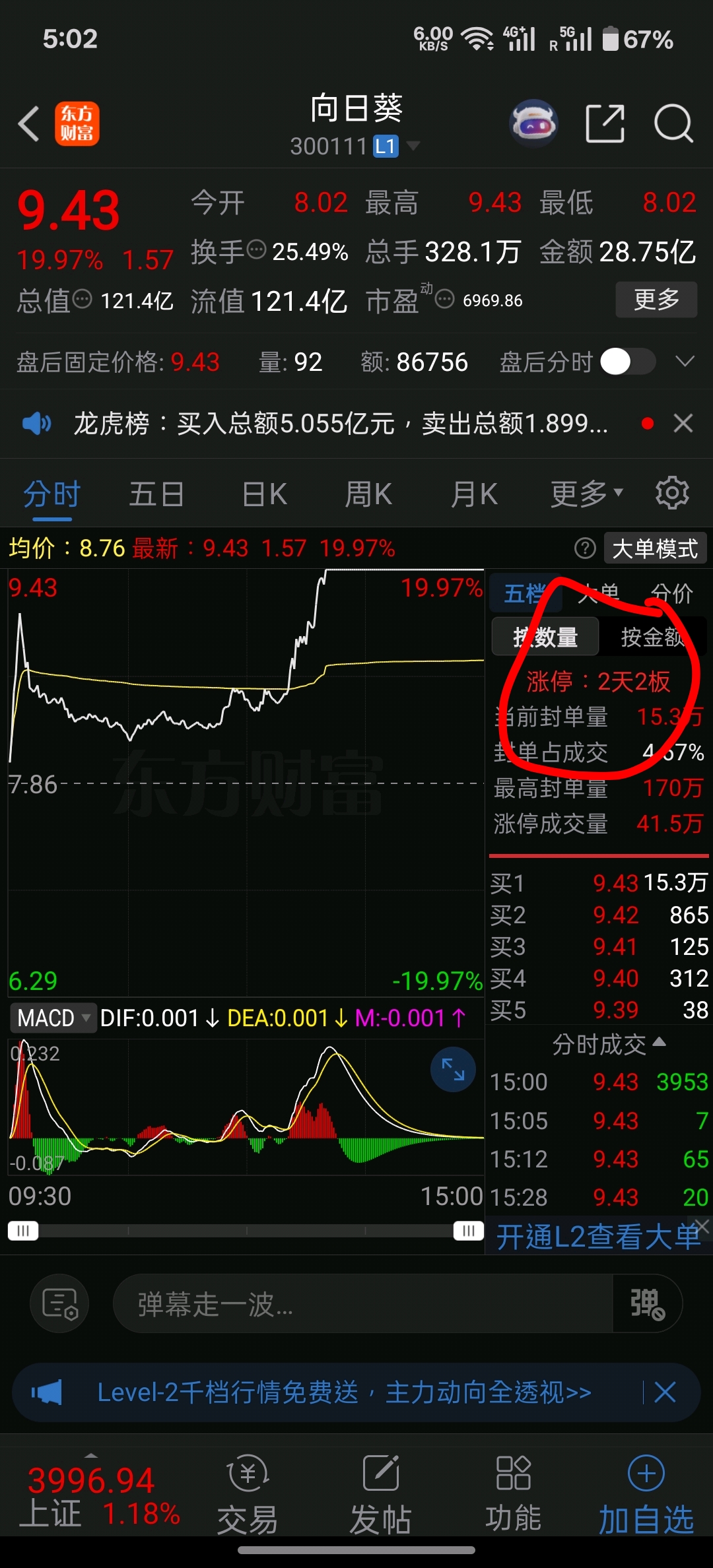 $向日葵(SZ300111)$ 是我眼花了吧?今天还要一个板?提前预报了