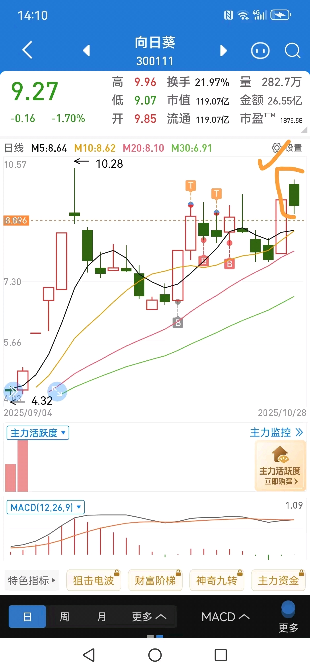 $向日葵(SZ300111)$ 这个第一次就被我猜对了,阴盖阳,担心后面还会跌。早知道自己也早点清仓,只是套住了没有走啊!主力,你页够狠的