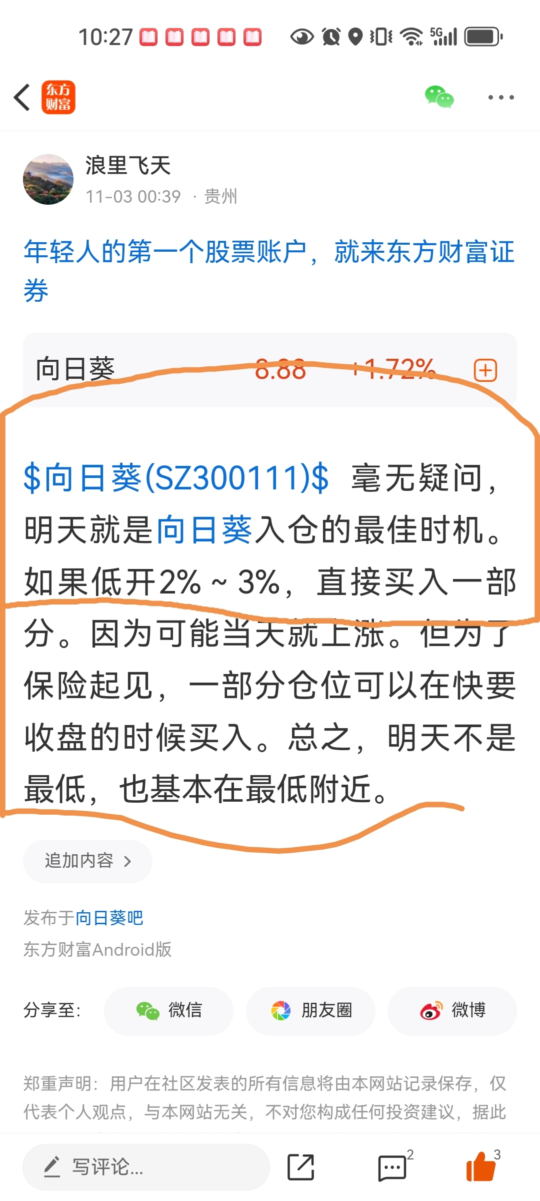 $向日葵(SZ300111)$ 昨天就跟各位说了,如果今天有负2%~3%的价格,直接买入即可。难道不是很正确吗?!