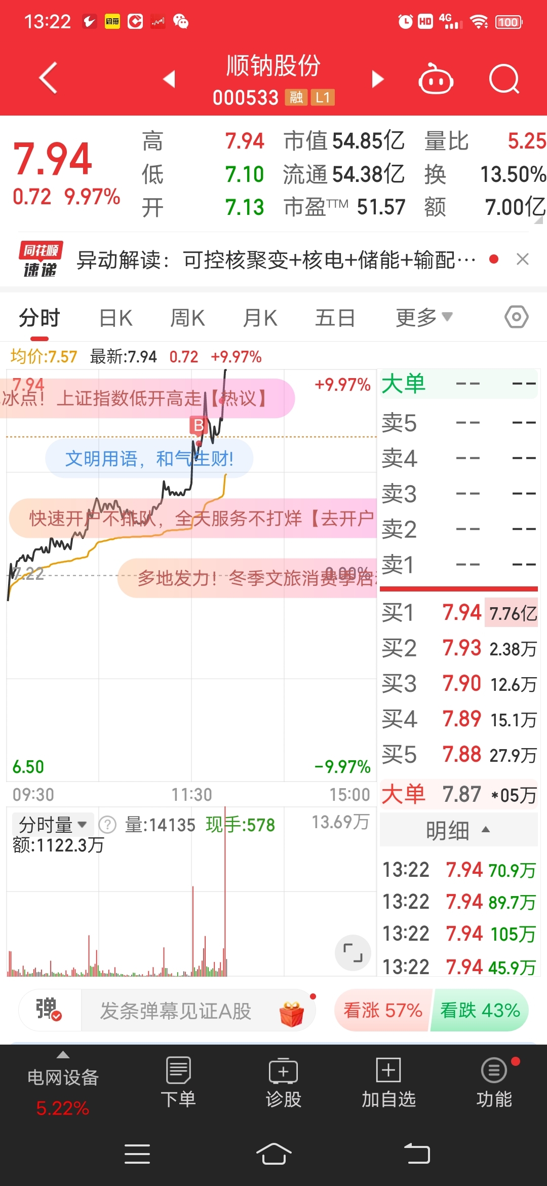 向日葵都卖了,买的顺纳股份,涨停。