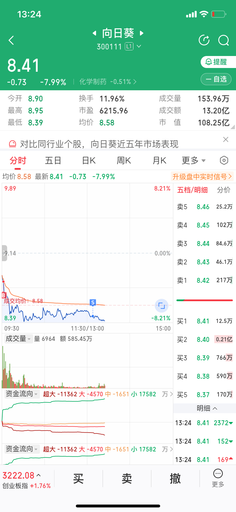 $向日葵(SZ300111)$ 恶庄 ,昨天回本没走又深套 以后不能格局