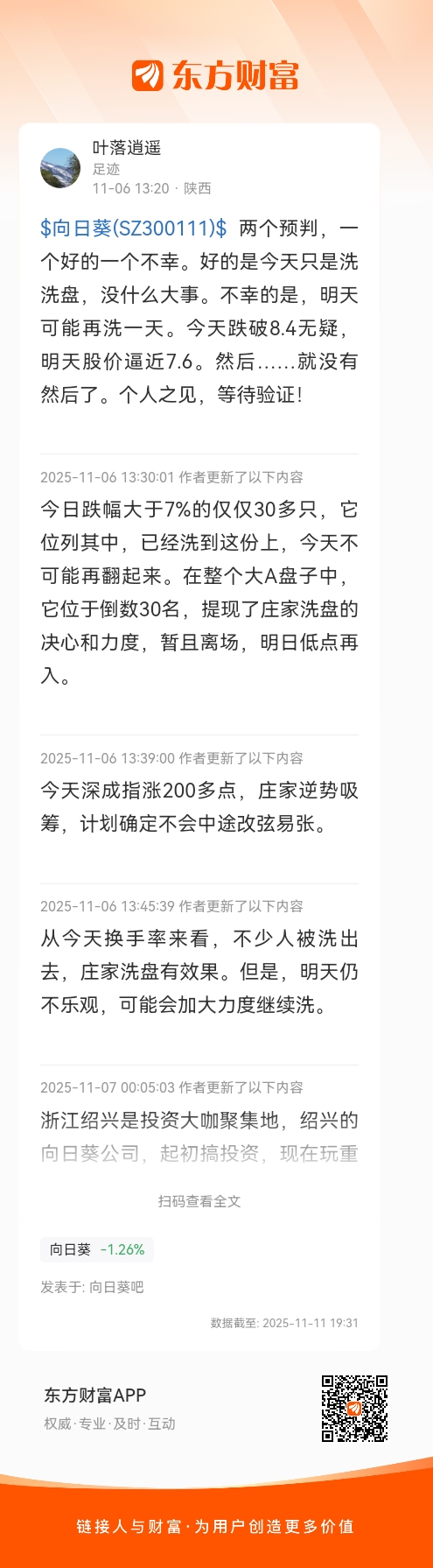 $向日葵(SZ300111)$ 两个预判,一个好的一个不幸。好的是今天只是洗洗盘,没什么大事。不幸的是,明天可能再洗一天。今天跌破8.4无疑,明天股价逼近7.6。然后……就没有然后了。个人之见,等待验证!