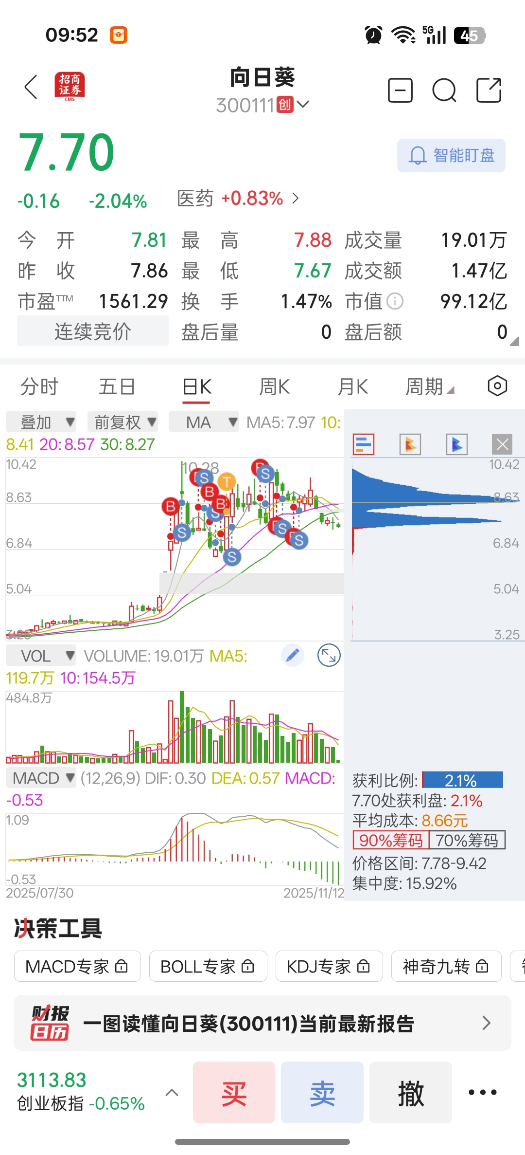 $向日葵(SZ300111)$ 我7.68回家看有没有吃,现在大部分人已经要到极限了