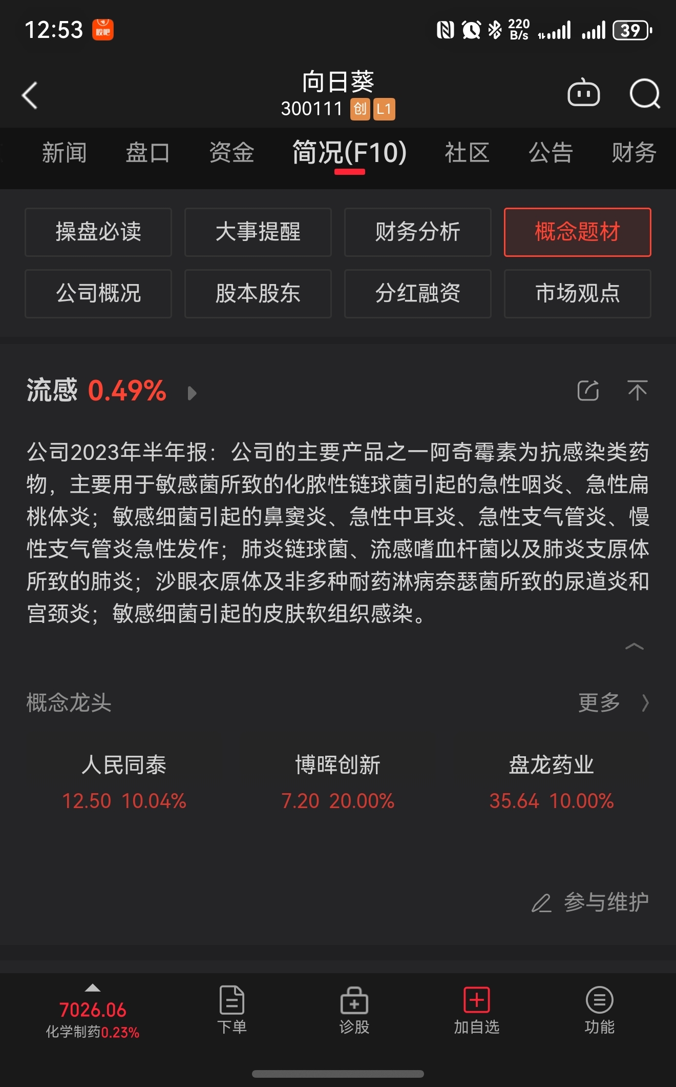 $向日葵(SZ300111)$ 流感概念发动了。$博晖创新(SZ300318)$ $药易购(SZ300937)$ 等集体涨停