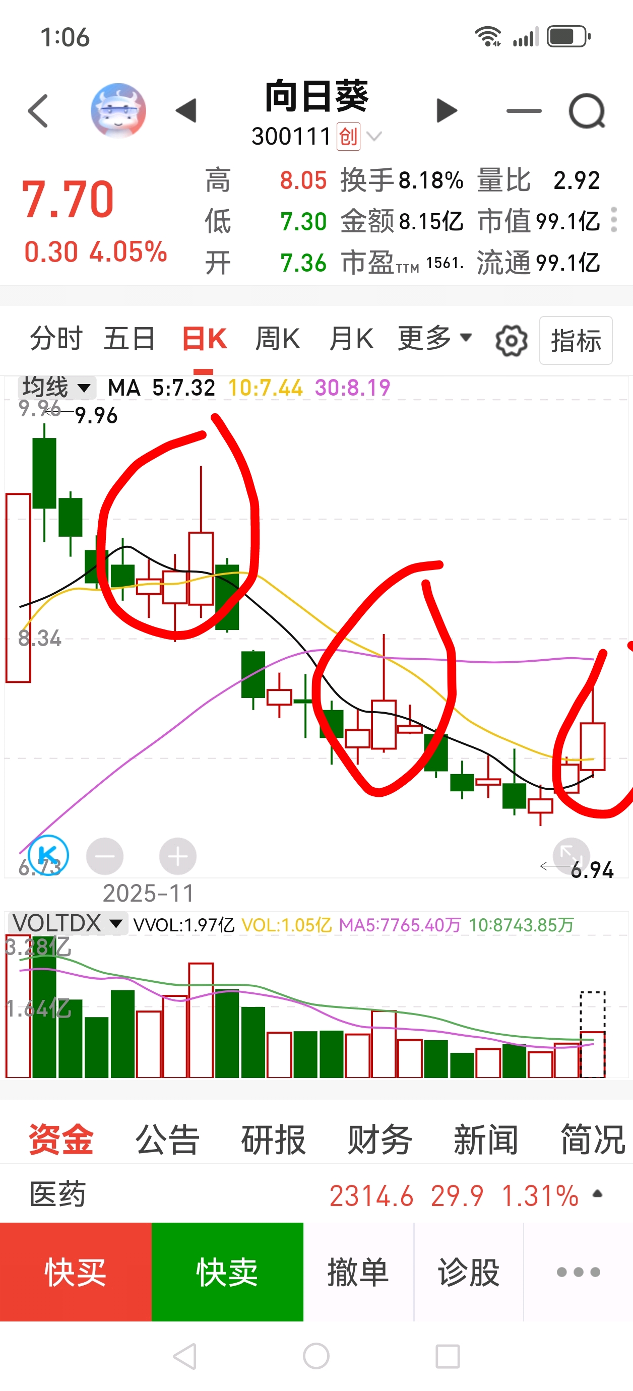 $向日葵(SZ300111)$ 昨天说过三条吊紧线一个样,没错吧。