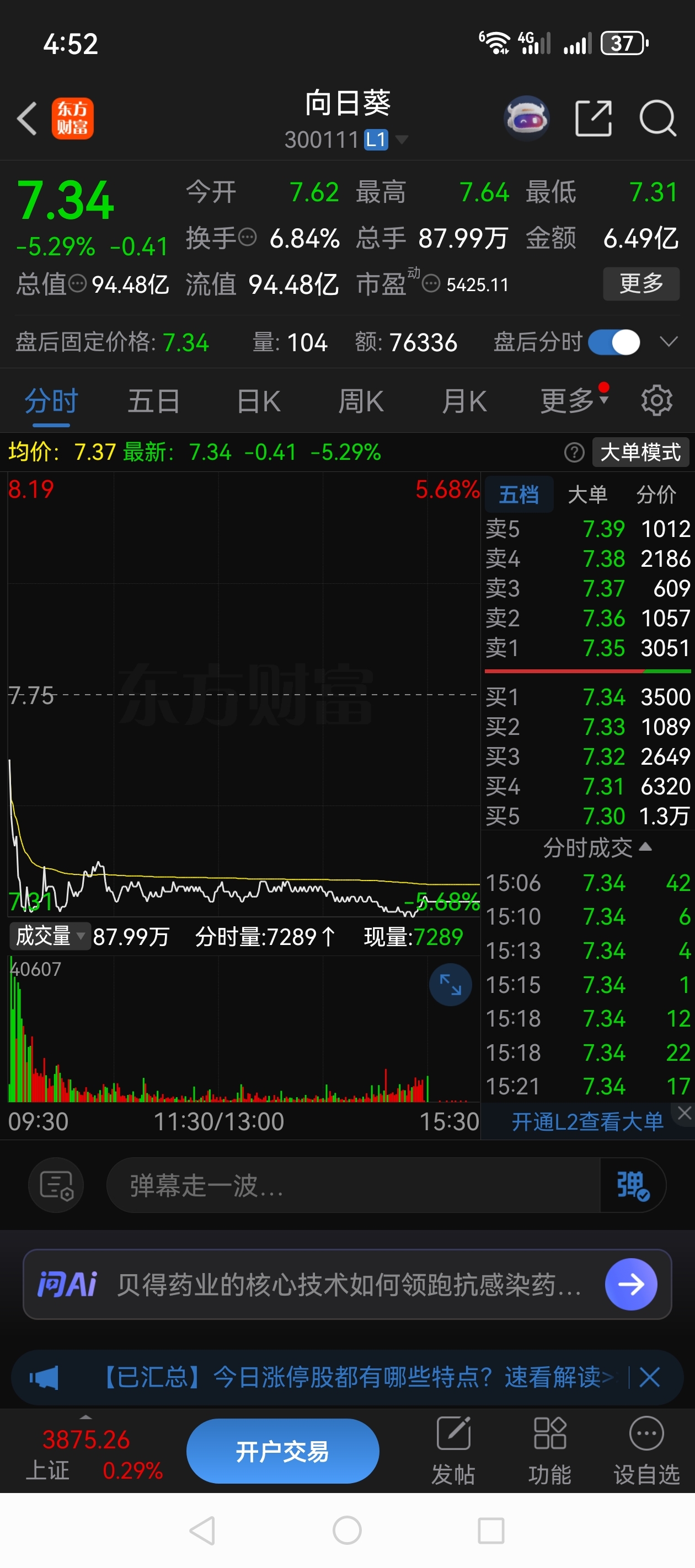 $向日葵(SZ300111)$ 明天可以红?