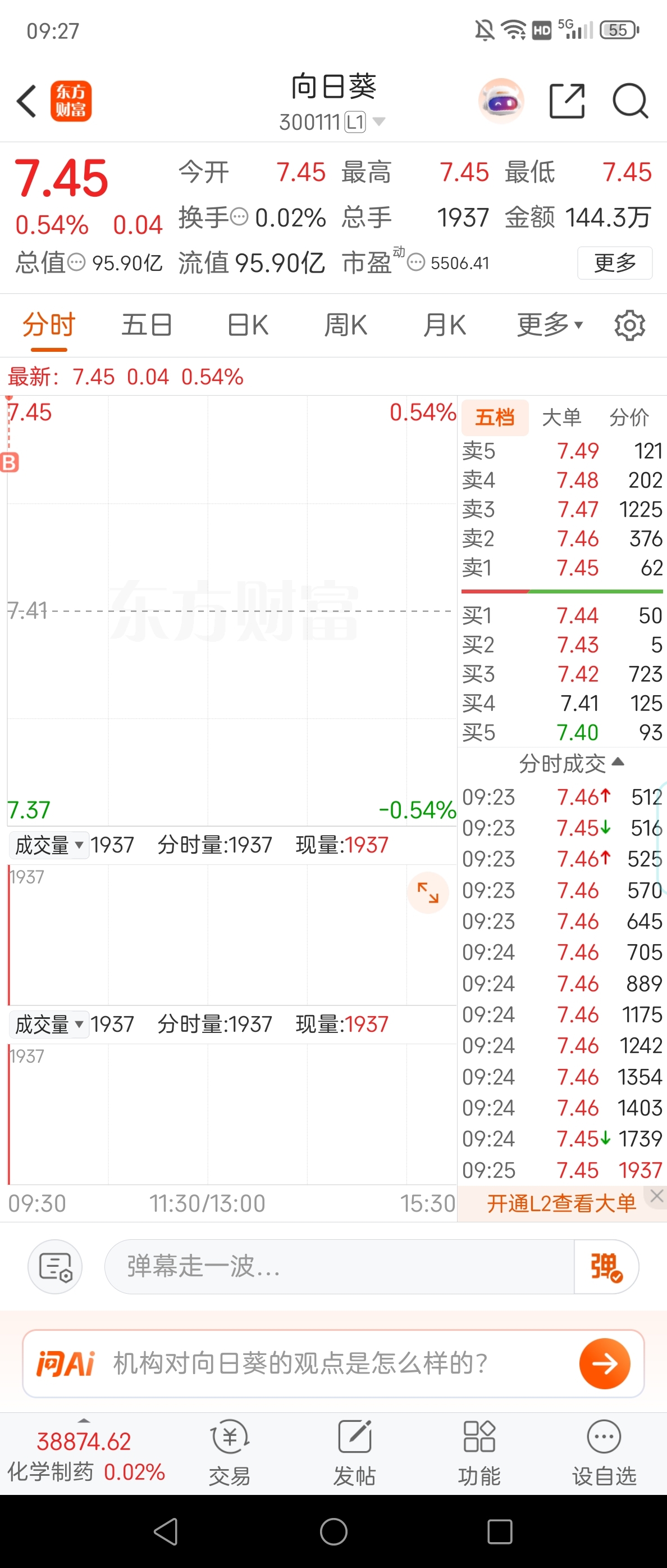 $向日葵(SZ300111)$ 顶格买入,马上就成交了