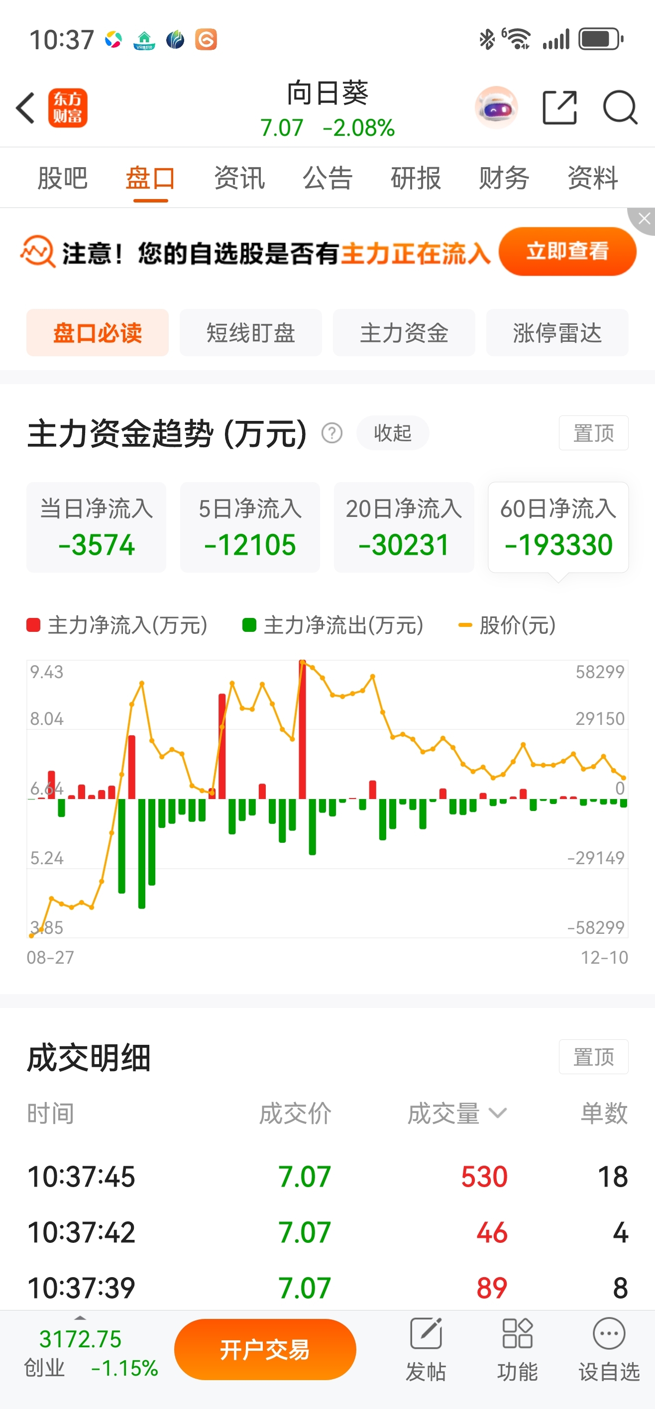 $向日葵(SZ300111)$ 60天流出19亿,居然还有人唱多,脑子里长的什么?