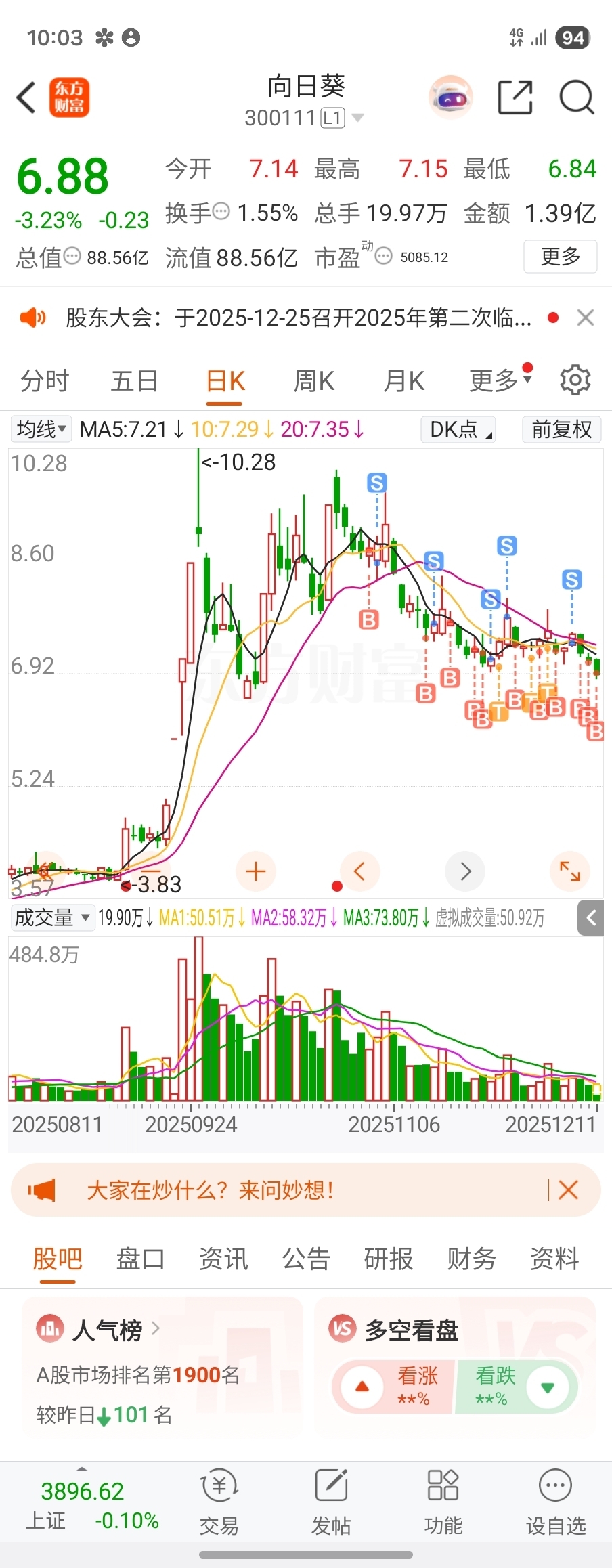 $向日葵(SZ300111)$ 没子弹了,卸软件。半个月后再看。