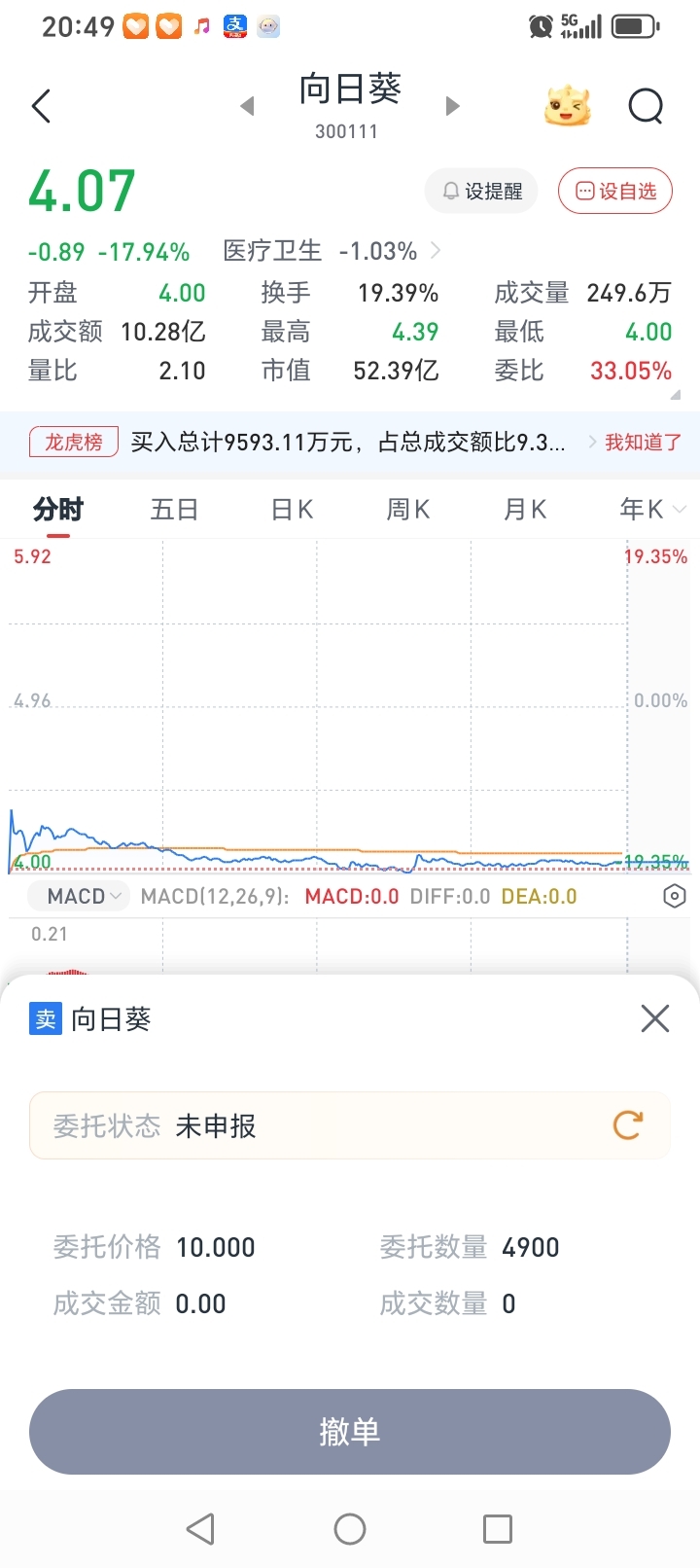 $向日葵(SZ300111)$ 准备十元卖掉它